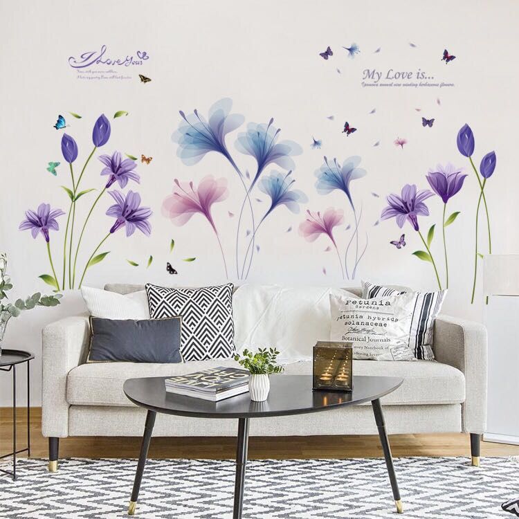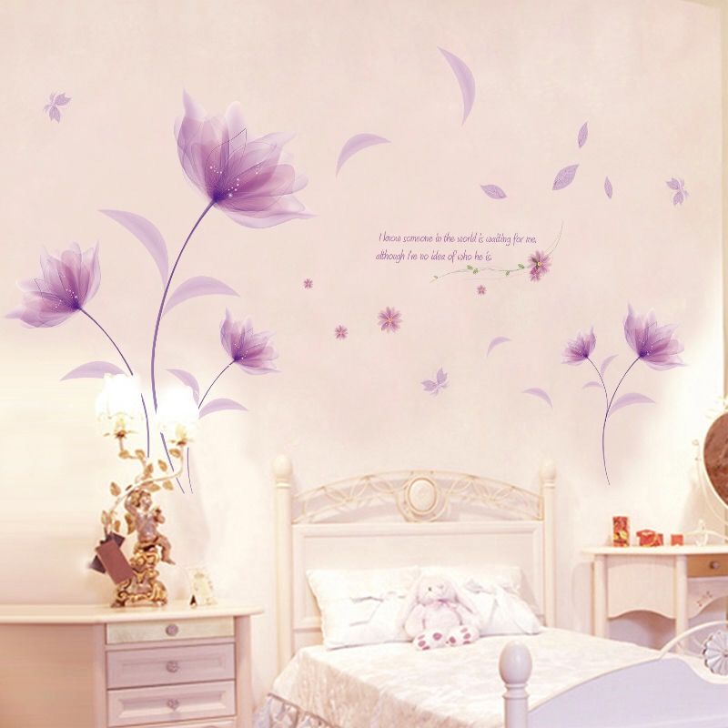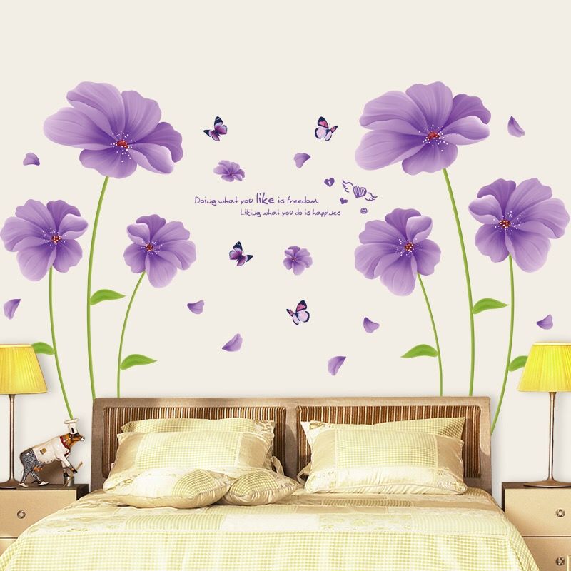 客厅婚房电视背景墙画贴纸卧室床头温馨贴花墙壁装饰墙贴紫色花朵