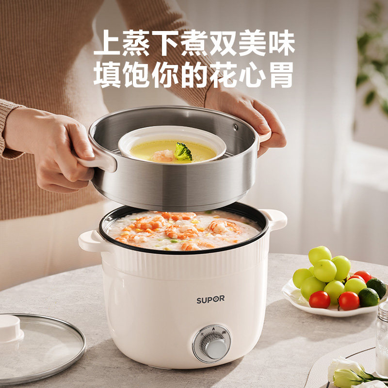 苏泊尔电煮锅家用学生宿舍小型电火锅一体锅蒸锅煮面锅不锈钢蒸笼