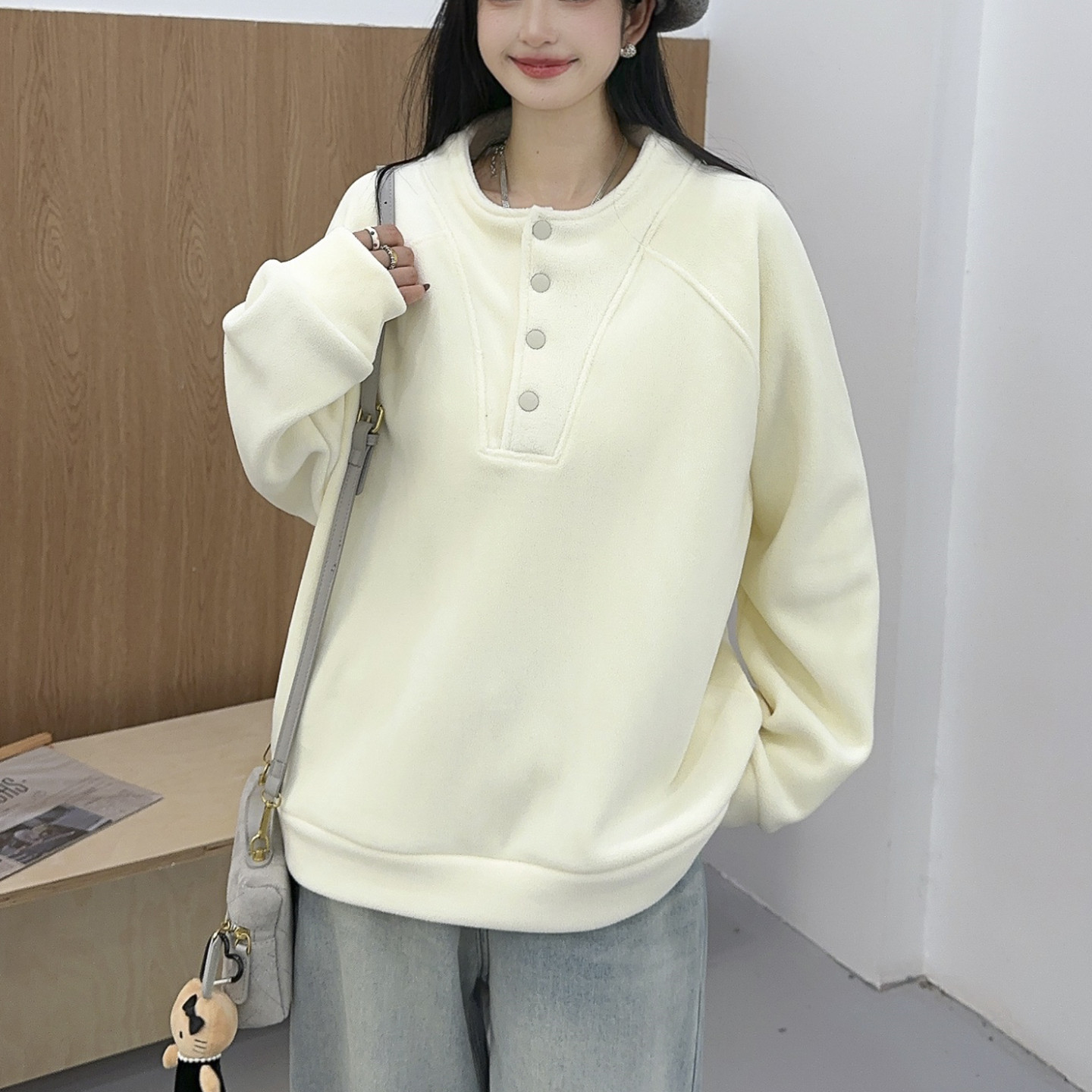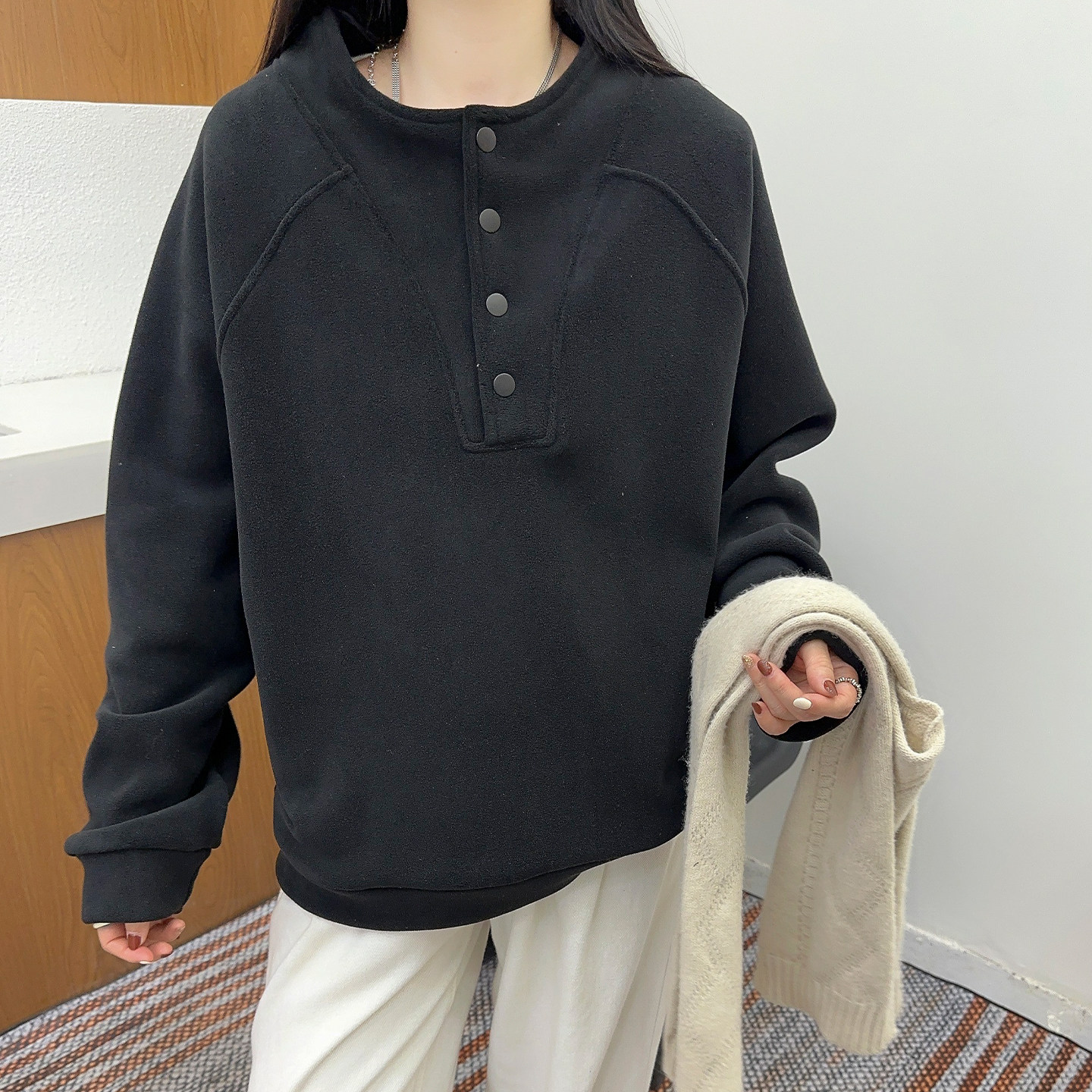 奥粒绒立领卫衣女2025秋冬新款宽松百搭加绒加厚保暖上衣韩版外套