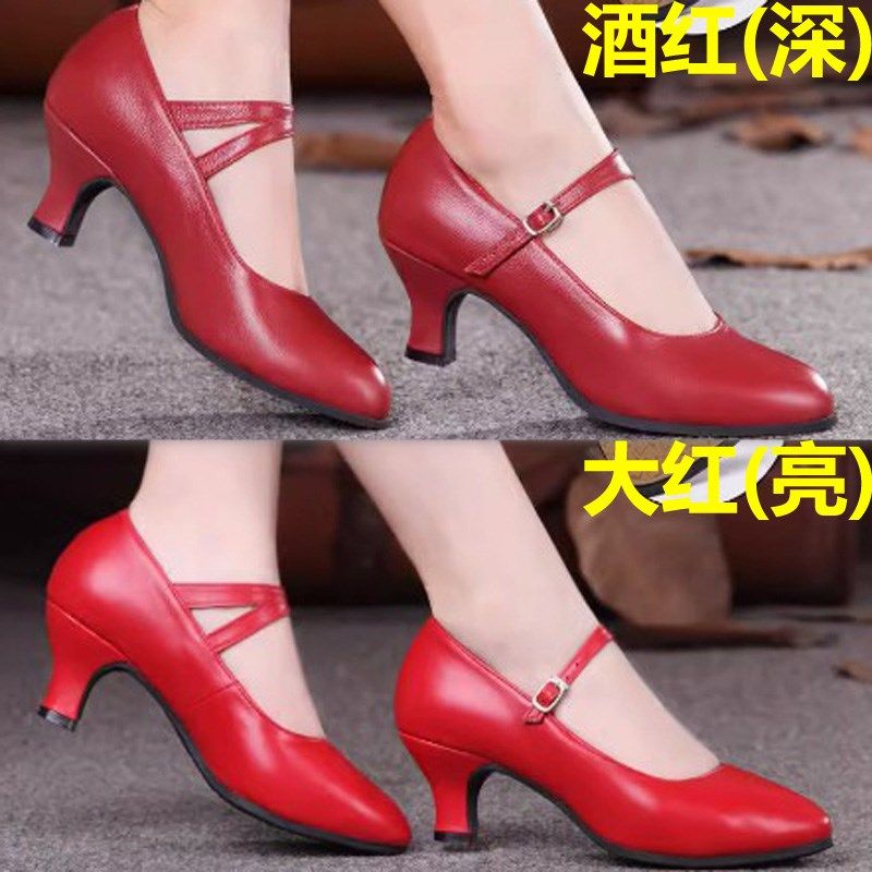 真皮女鞋子配裙子单鞋旗袍鞋夏季跳舞鞋软底红色婚鞋新娘鞋高跟鞋