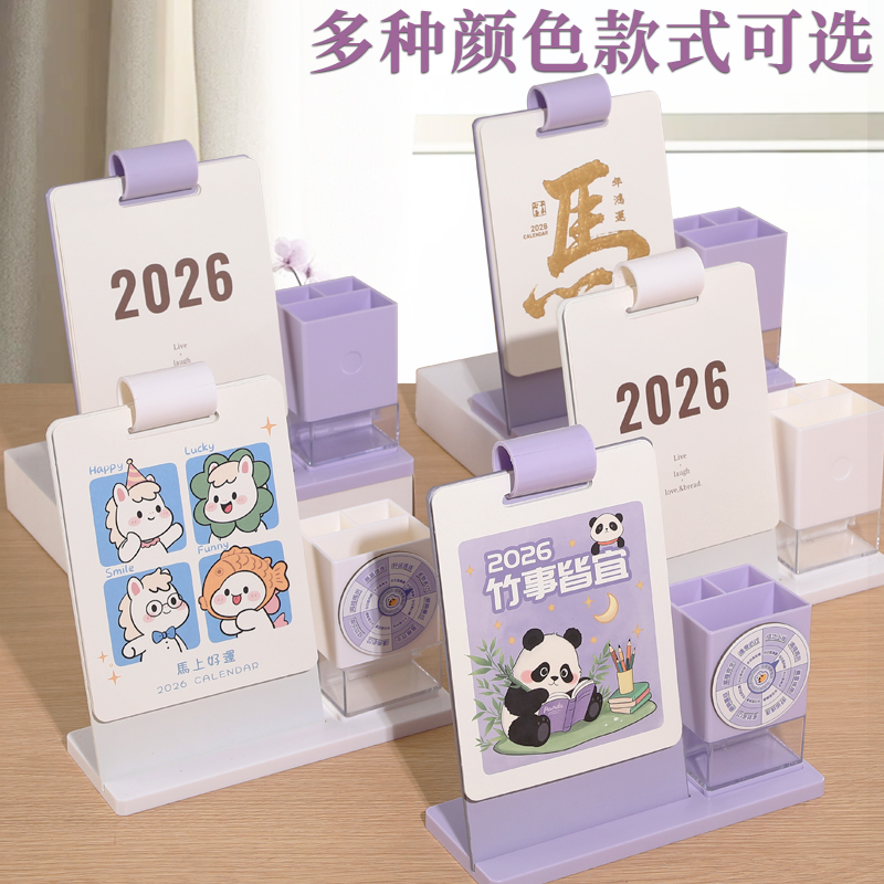 2026新款活页笔筒木质台历定制可印logo公司企业专版定做商务便签办公室简约桌面摆件马年月历日历记事本批发