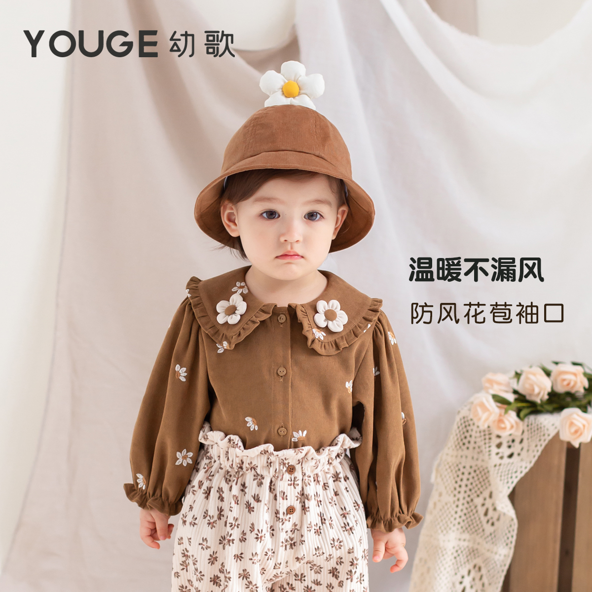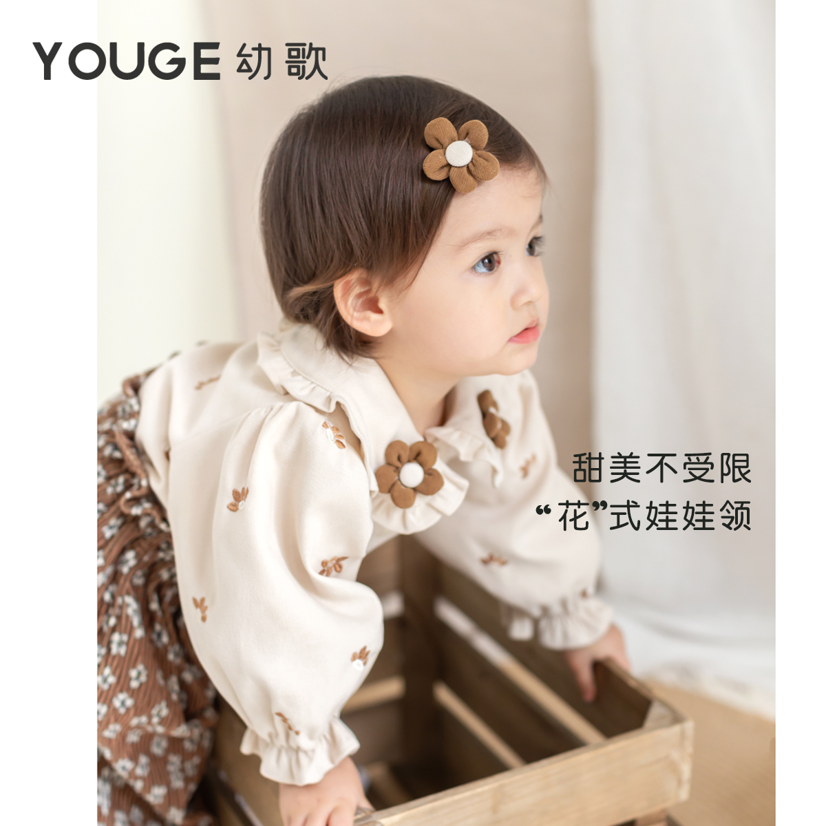 YOUGE幼歌 婴儿北欧风花朵复古娃娃领衬衫秋季新款女宝宝洋气衬衣