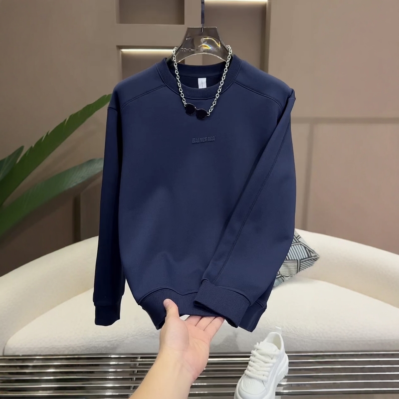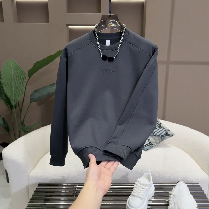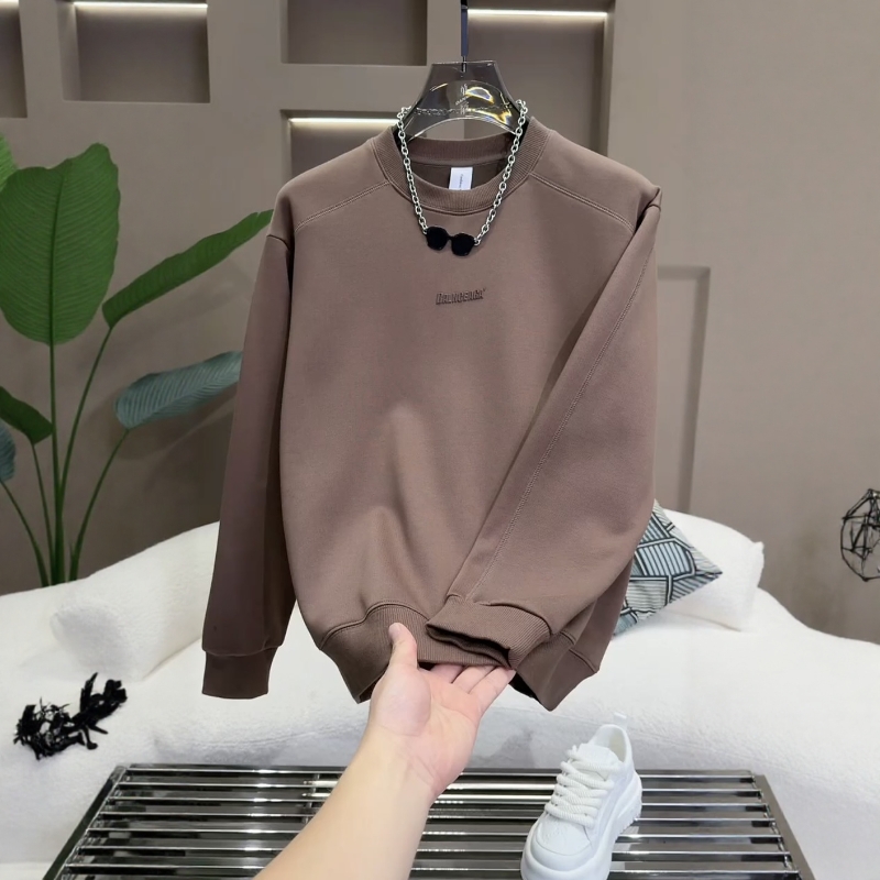 2025秋冬新款百搭休闲简约圆领卫衣男士套头长袖加厚加绒保暖上衣