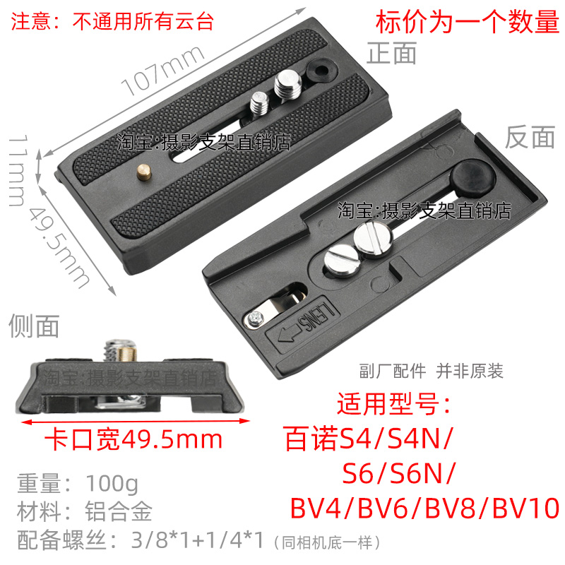 适用百诺快装板S4/S6/S7/BV4BV6液压云台相机底座QR4/QR6 PROA39