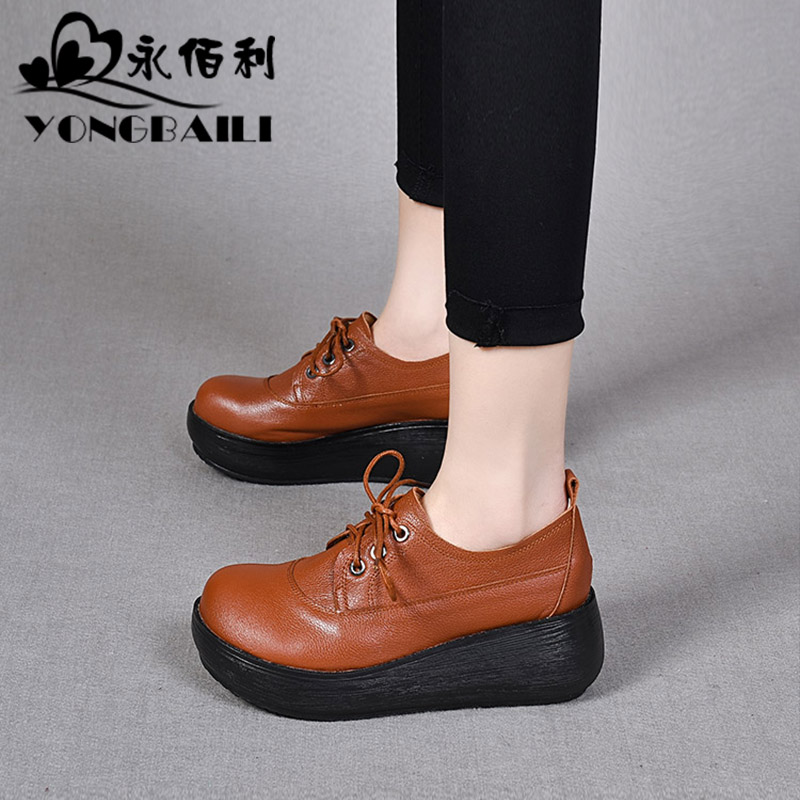 松糕鞋女鞋休闲鞋坡跟牛皮皮鞋