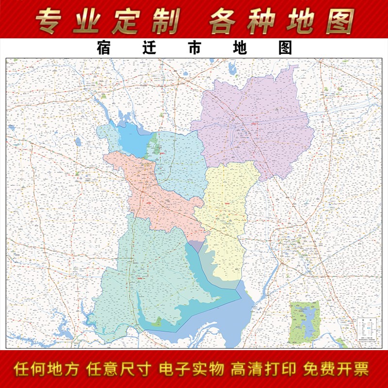 2021新款宿迁市地图贴图办公室挂图高清防水墙壁贴超大装饰画定制