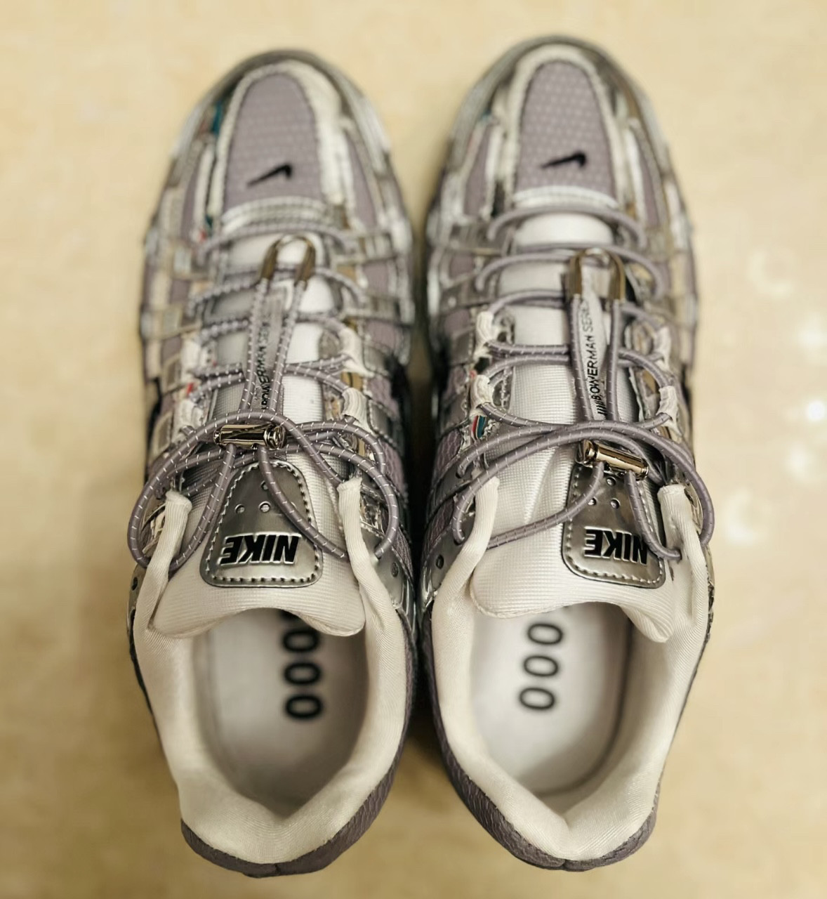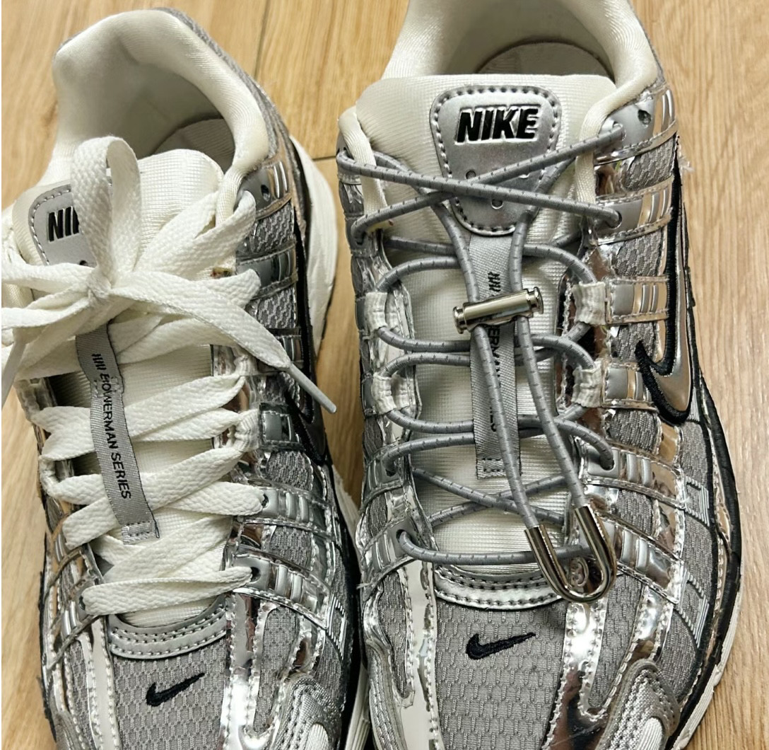 适配耐克P6000银色跑步鞋懒人免系纯色细圆反光鞋带手工diy鞋绳