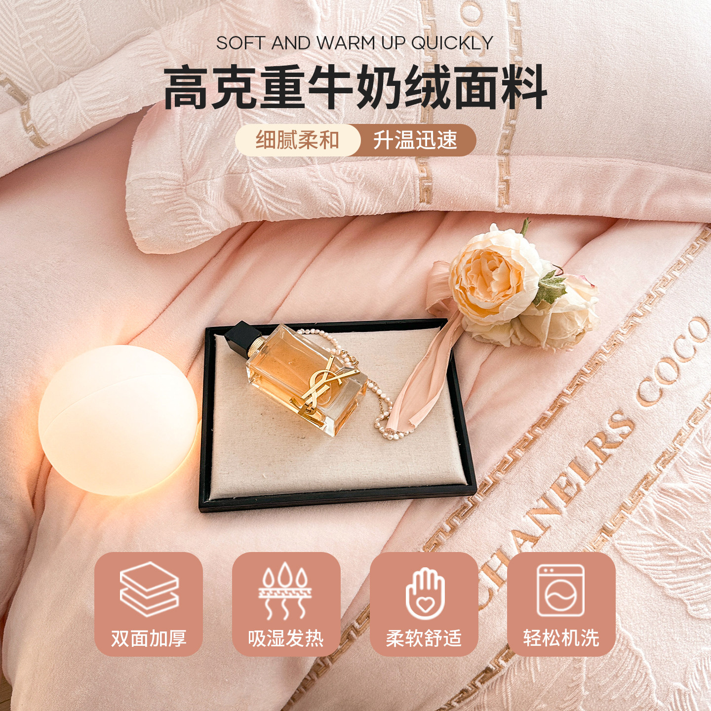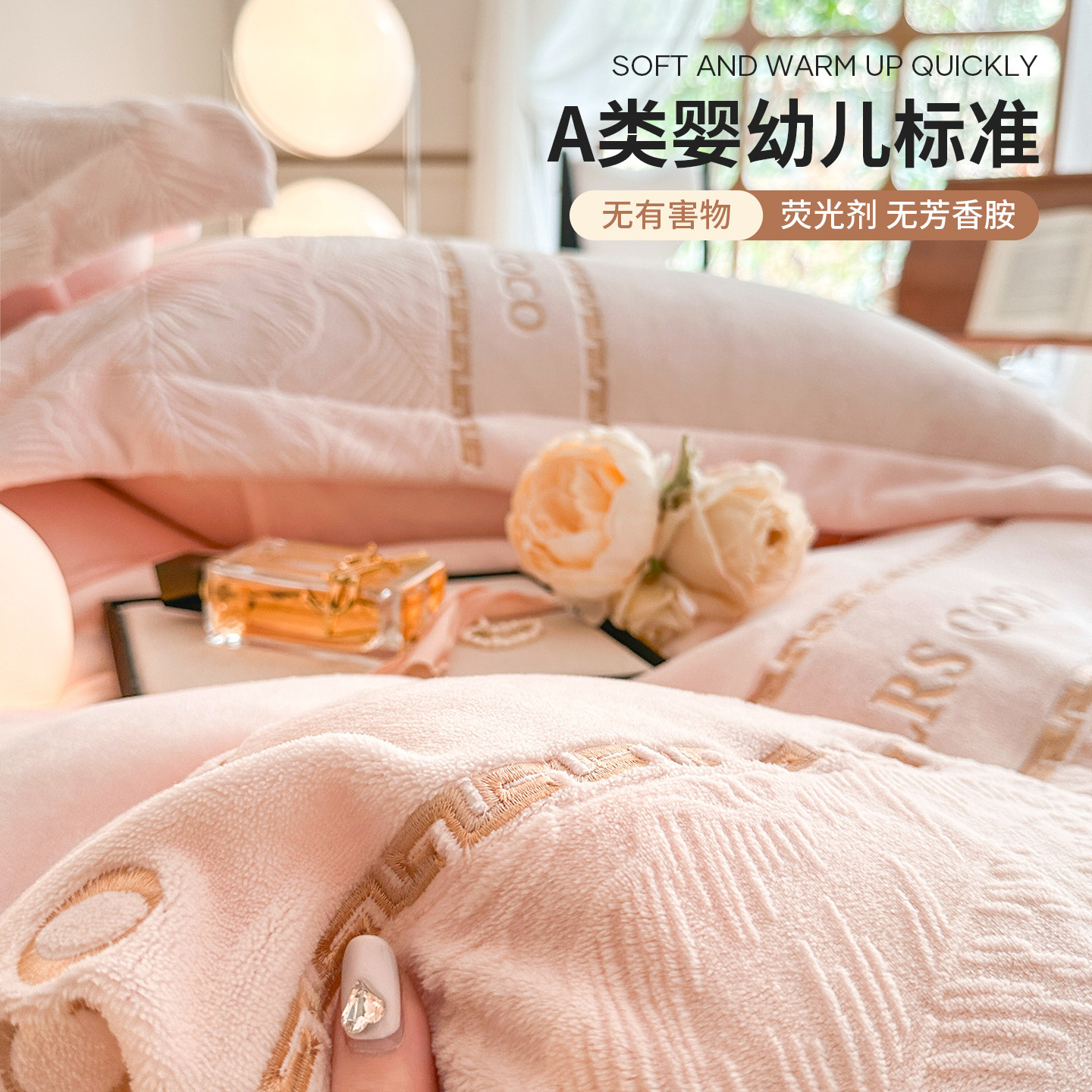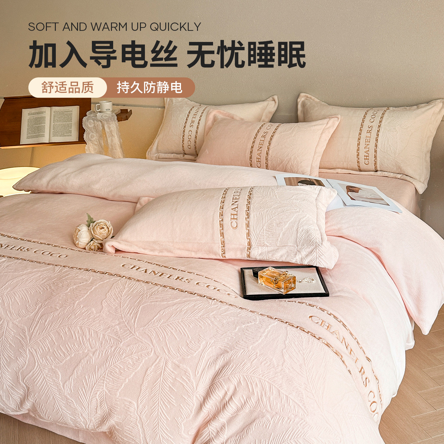 红豆冬季高级感加厚牛奶绒床上四件套2025新款双面加绒珊瑚绒被套