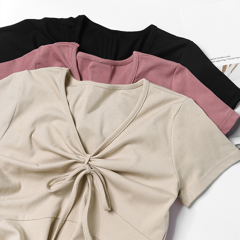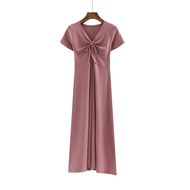 夏季新款纯棉V领修身显瘦短袖体恤打底连衣裙韩版女装加长款T恤