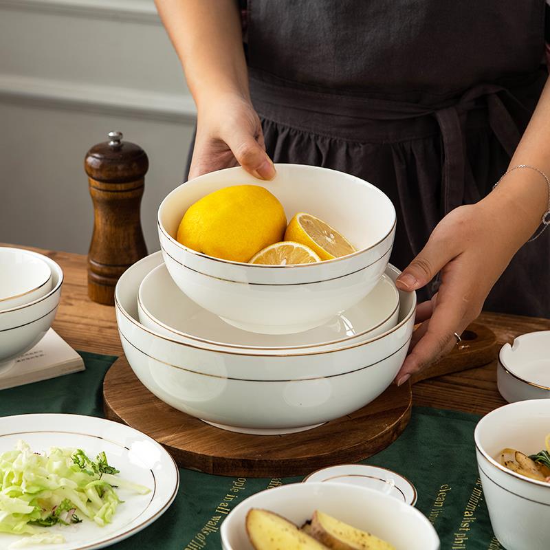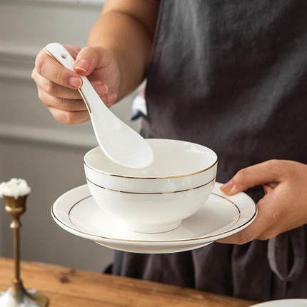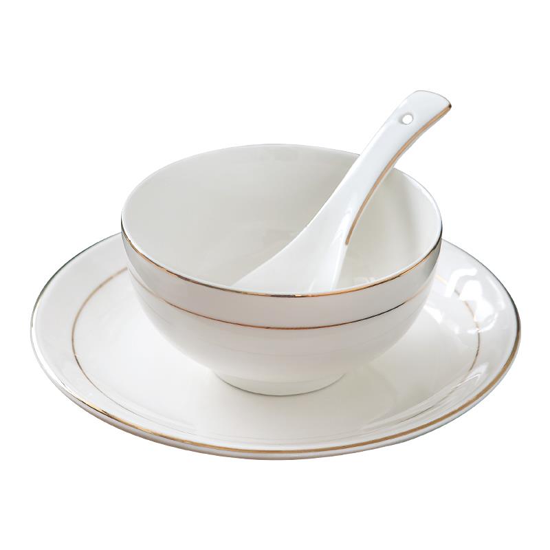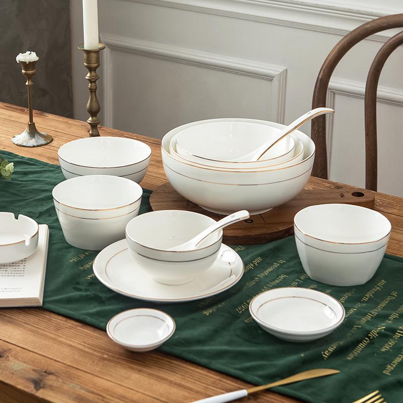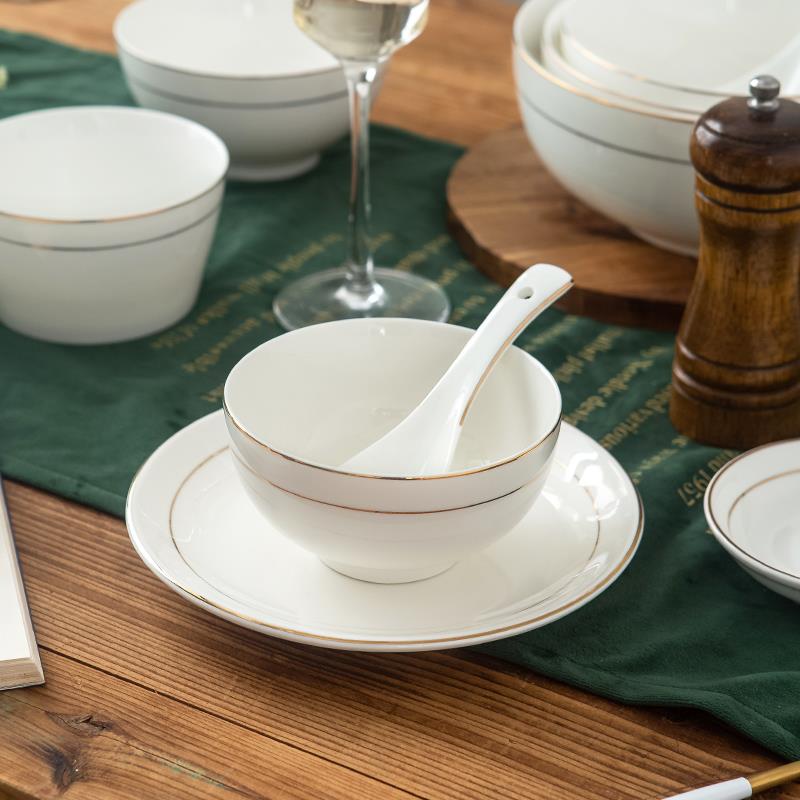 家用陶瓷吃饭碗金边新骨瓷碗碟套装摆台餐具 4.5英寸米饭碗装泡面