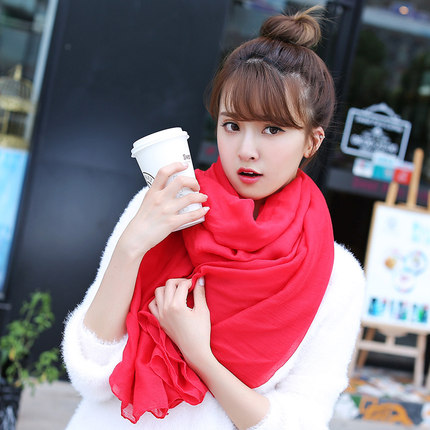 女士超长款棉麻围巾披肩两用女文艺纯色亚麻韩版丝巾百搭春秋冬