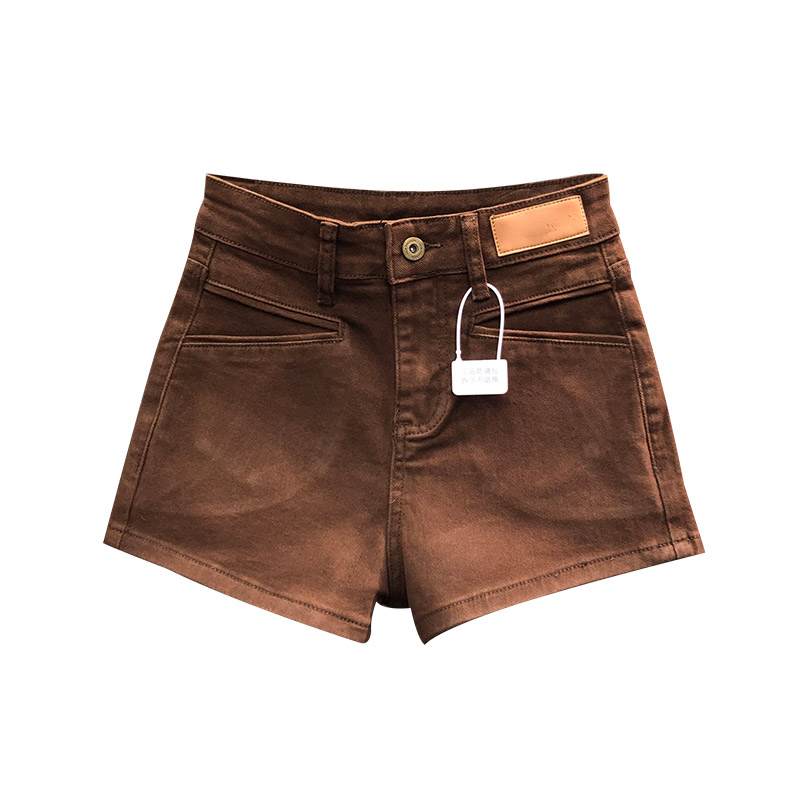 咖啡色高腰显瘦牛仔短裤女2025秋季时尚修身弹力百搭A字打底阔腿