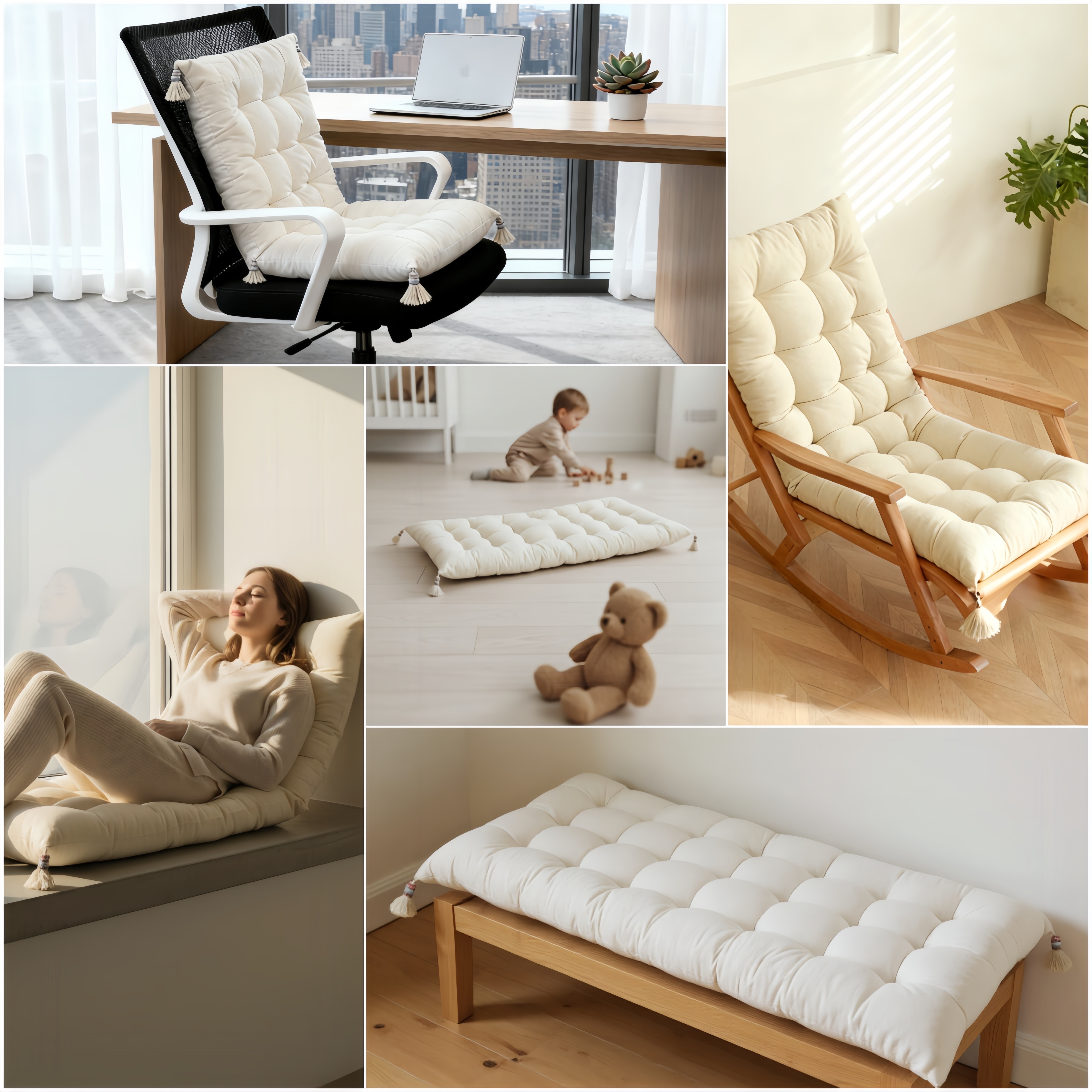 全棉垫子客厅飘窗软垫纯棉躺椅垫办公久坐连体坐垫长条椅垫可定制