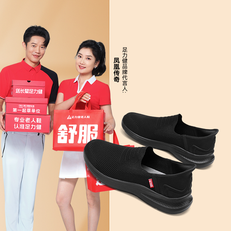 足力健老人鞋官方旗舰店正品秋季透气软底不累脚超轻爸爸休闲男鞋