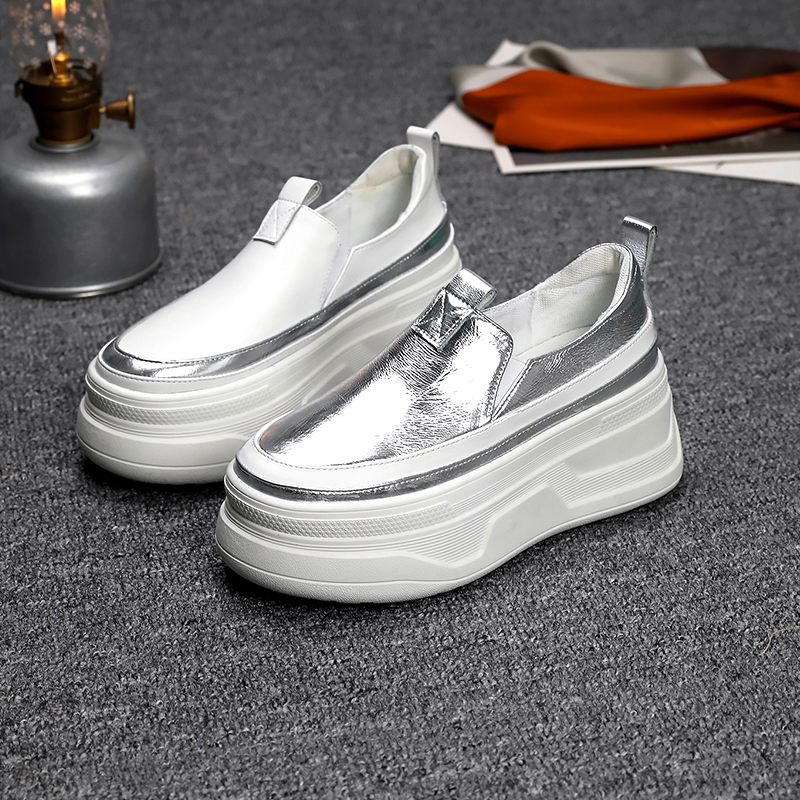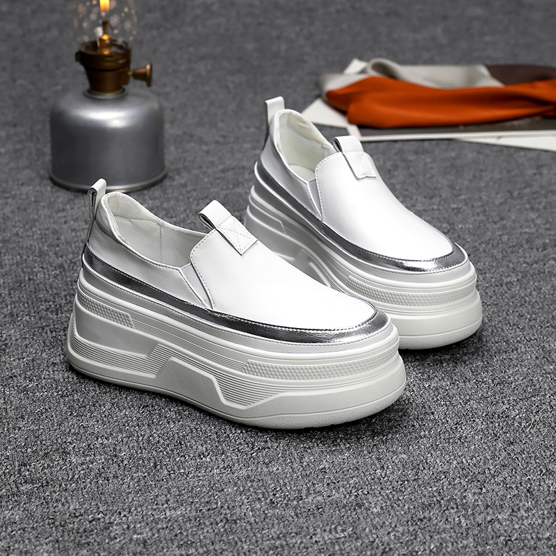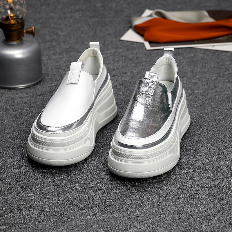 真皮增高松糕厚底小白鞋女2025秋季新款板鞋轻便一脚蹬运动休闲鞋