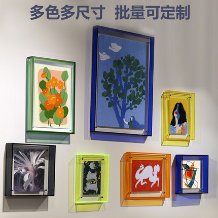 相框挂墙定制亚克力极窄边框印照片墙明星应援色展馆装饰展示A4A3