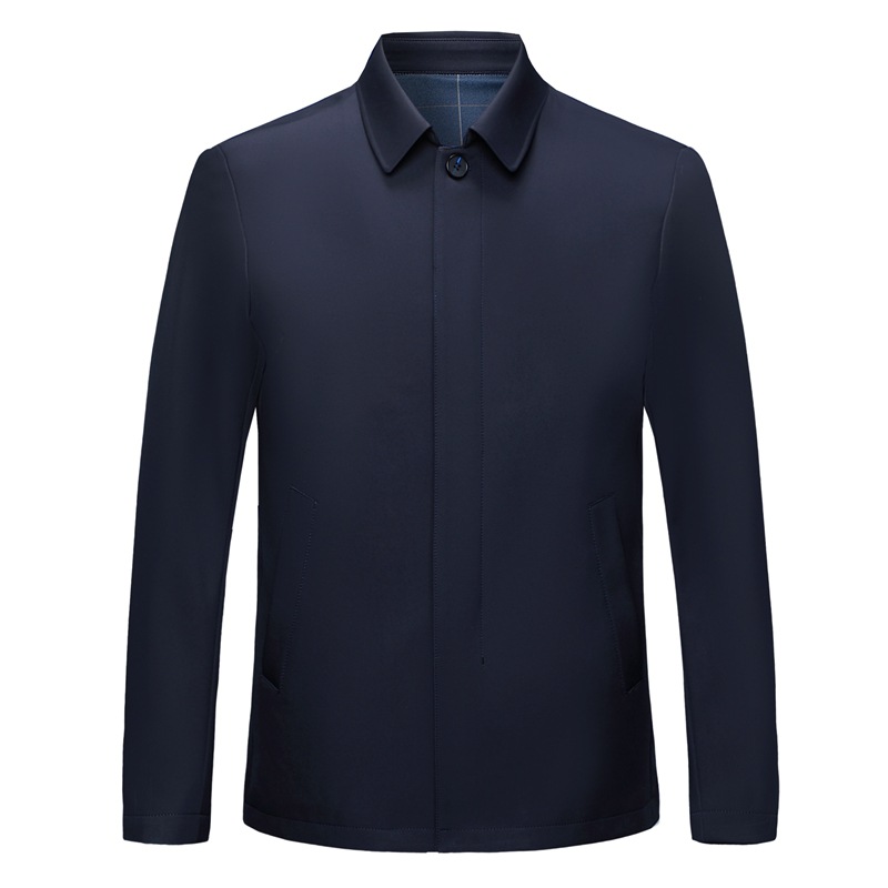 日本品质高端男士桑蚕丝夹克中年商务休闲春秋季翻领茄克高档爸爸