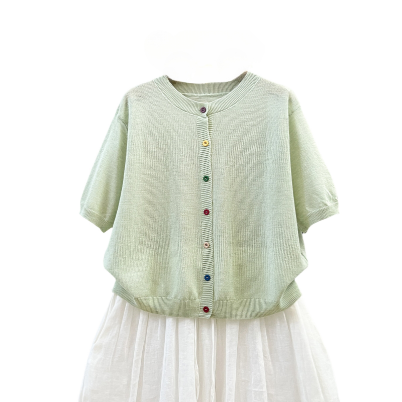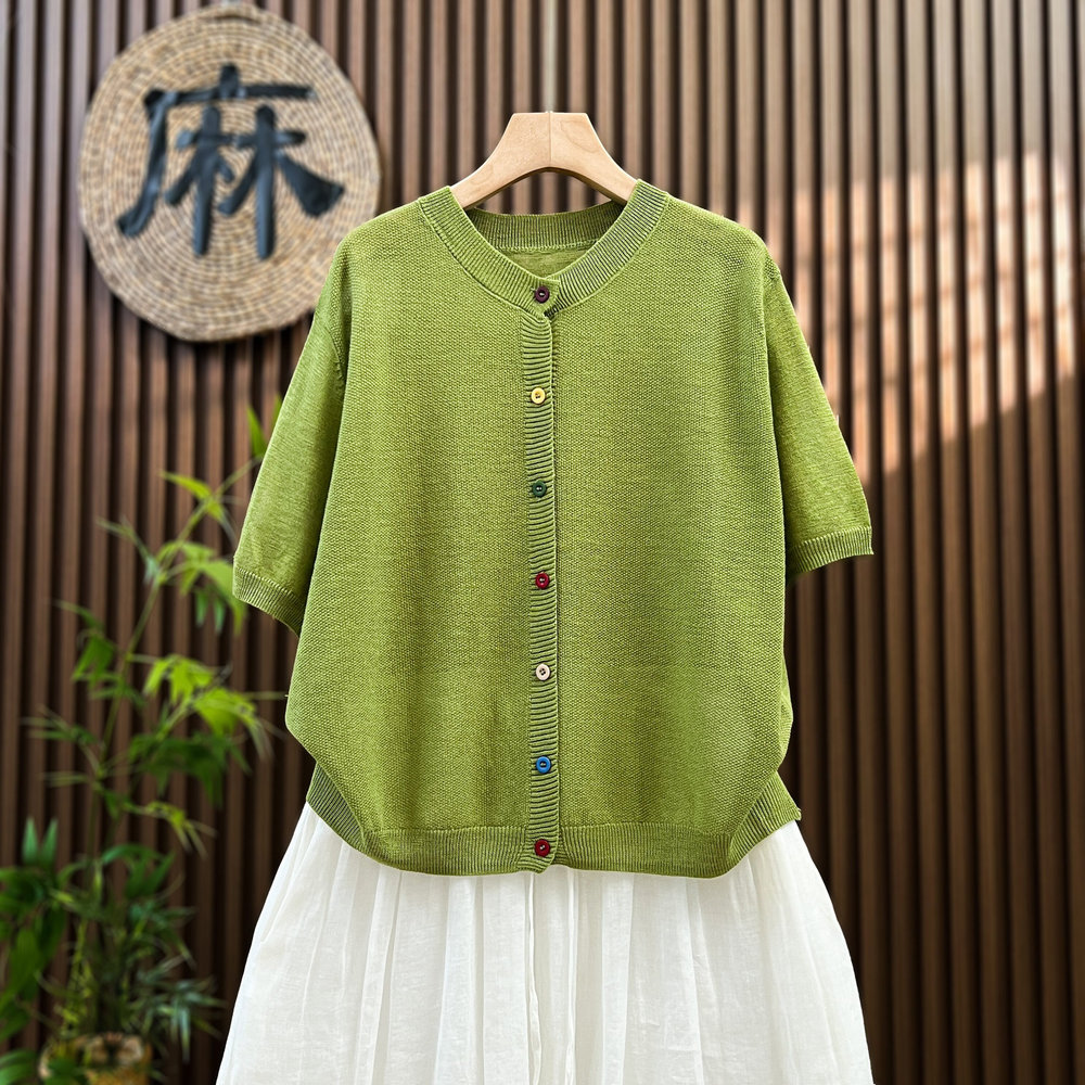 大码时尚圆领竹节麻薄款针织开衫女夏季短袖外搭披肩防晒上衣女