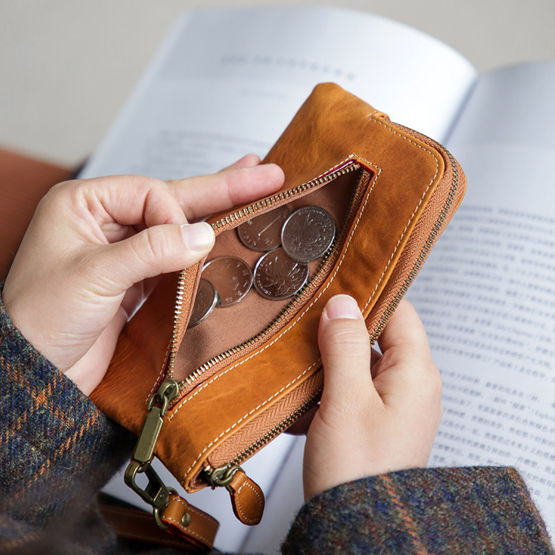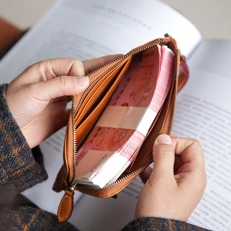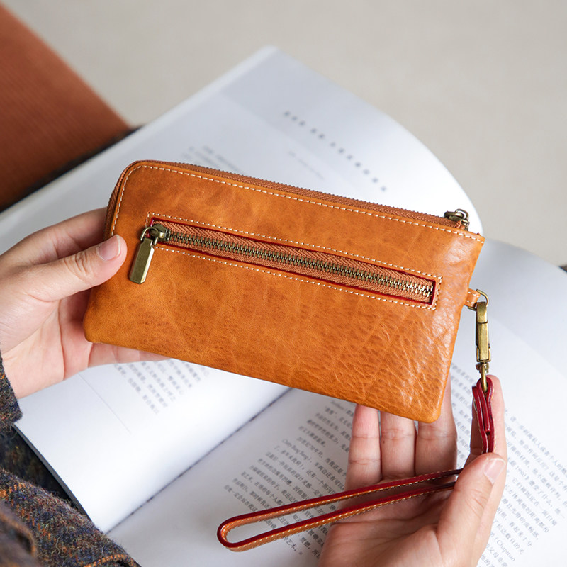 新款头层牛皮手拿包女真皮长款拉链钱包复古大容量手机零钱袋卡包