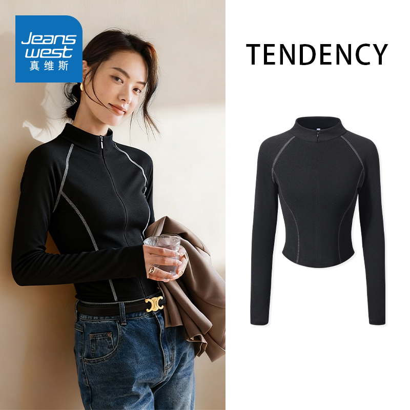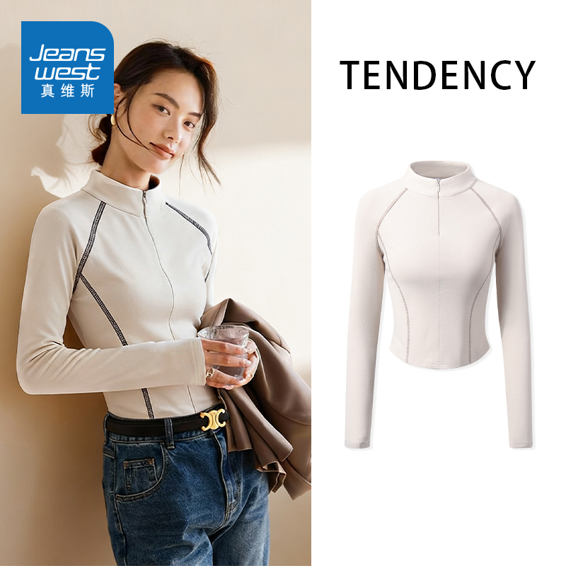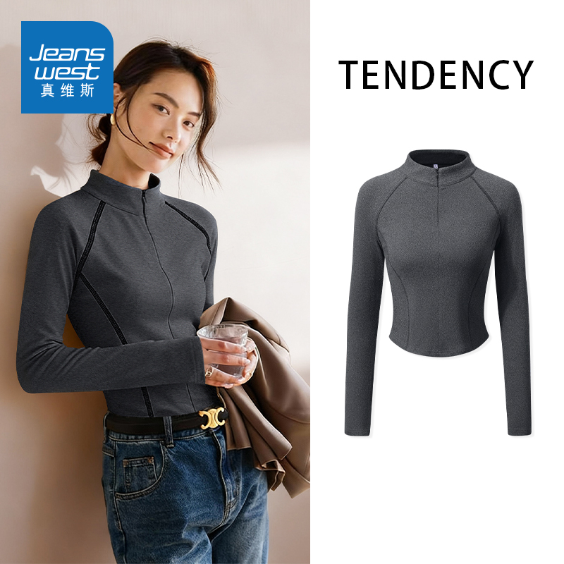 NOW真维斯薄绒半高领拉链打底衫女秋季新款保暖内搭上衣长袖t恤
