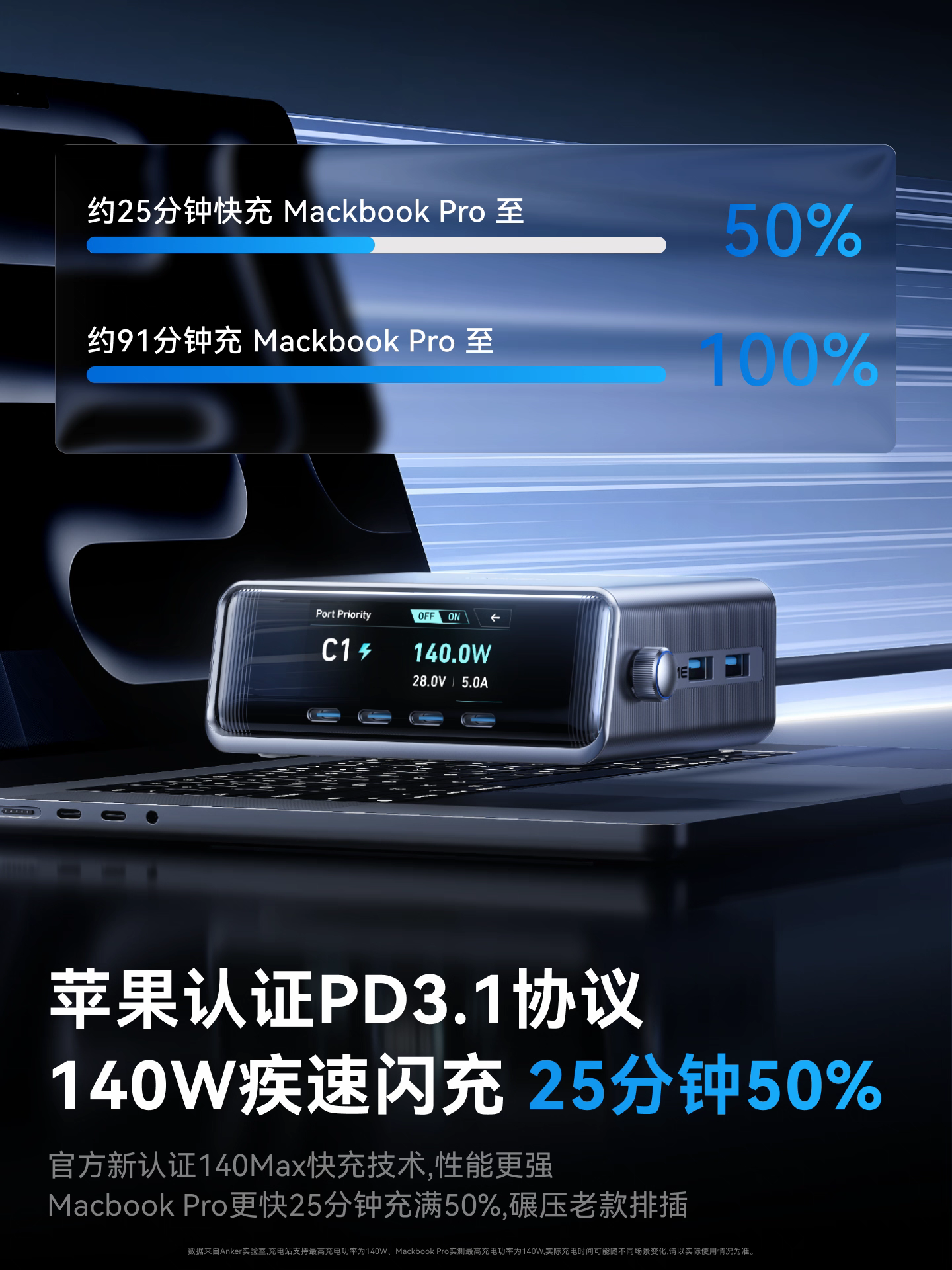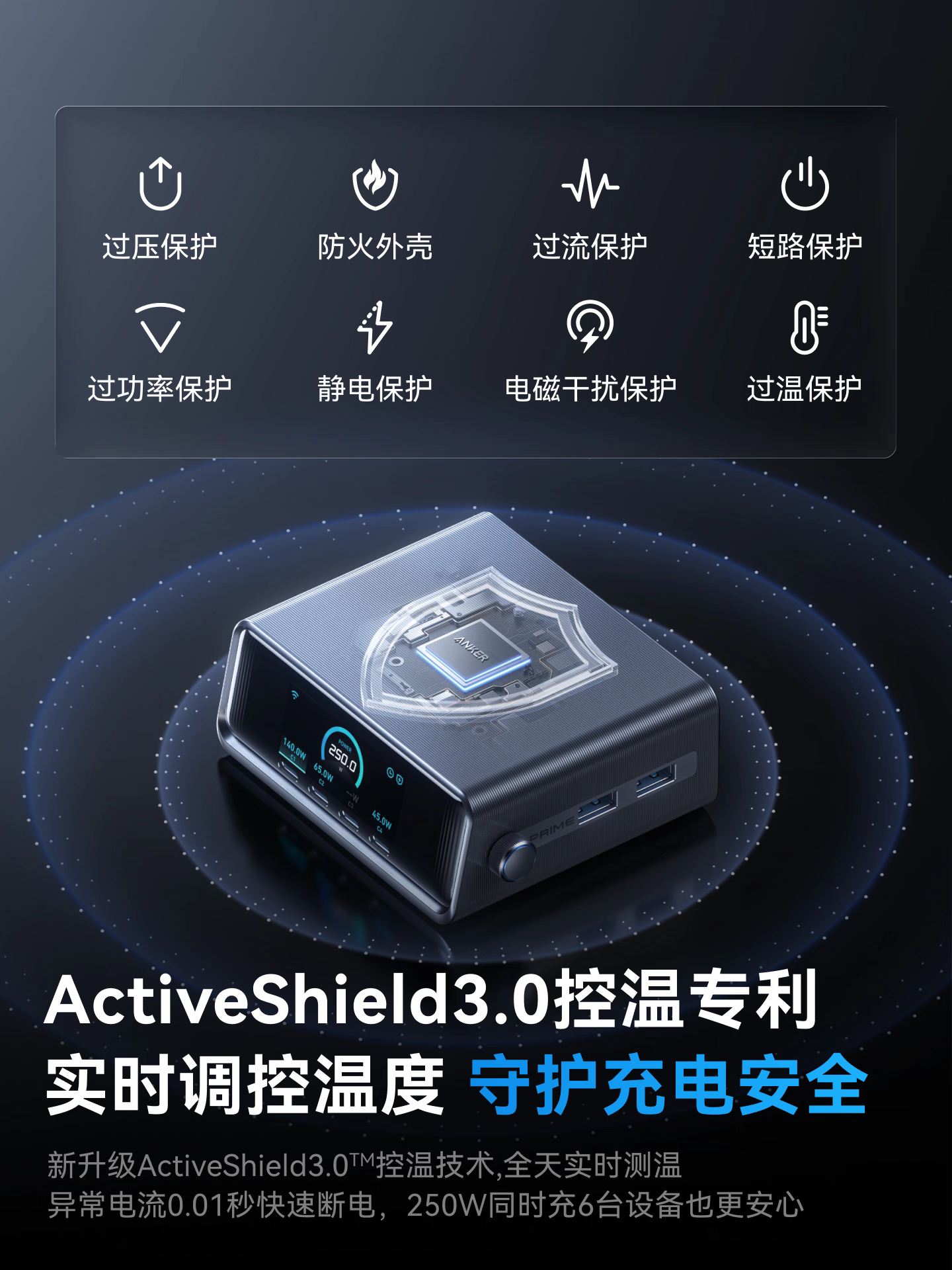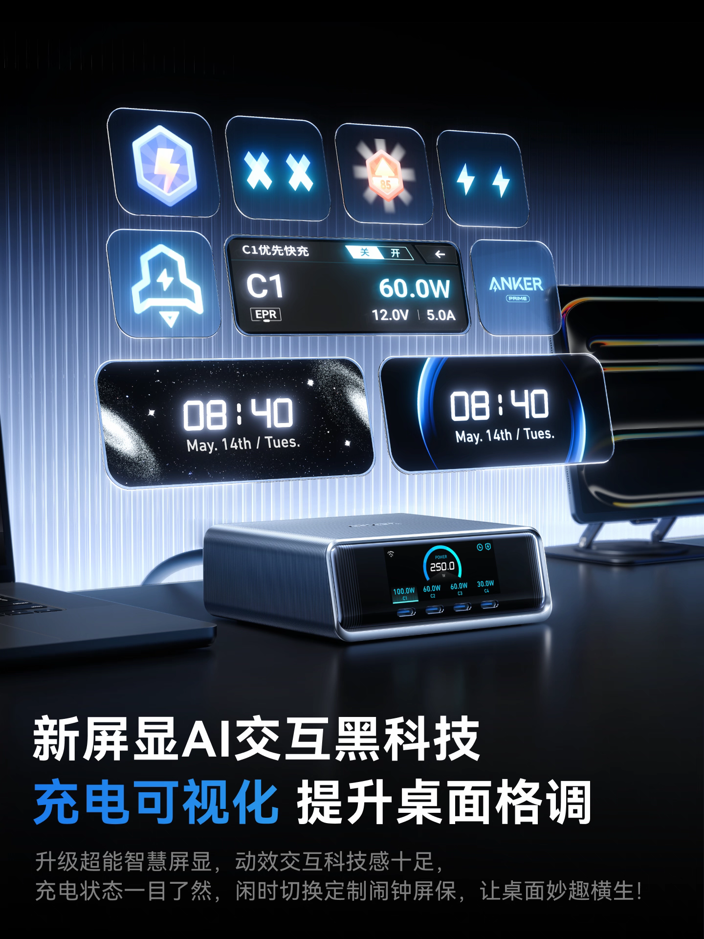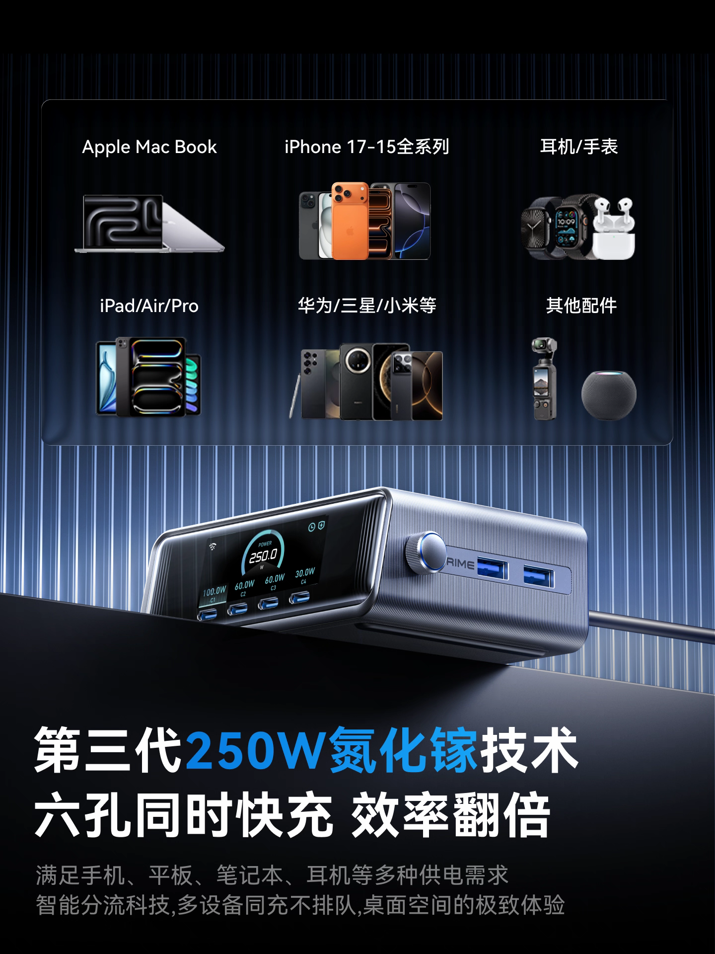 Prime 250W氮化镓充电器智能多口桌面充电站手机笔记本快充PD官翻