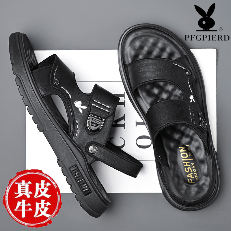 花公子凉鞋男款真皮沙滩鞋凉拖鞋