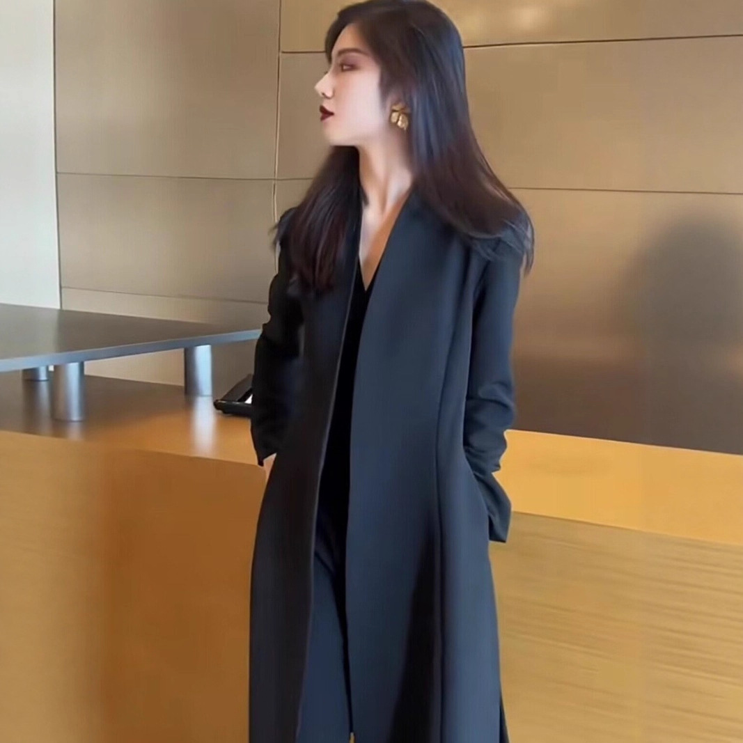 抖音网红大码过膝黑色风衣外套胖mm收腰显瘦流行爆款大衣女200斤