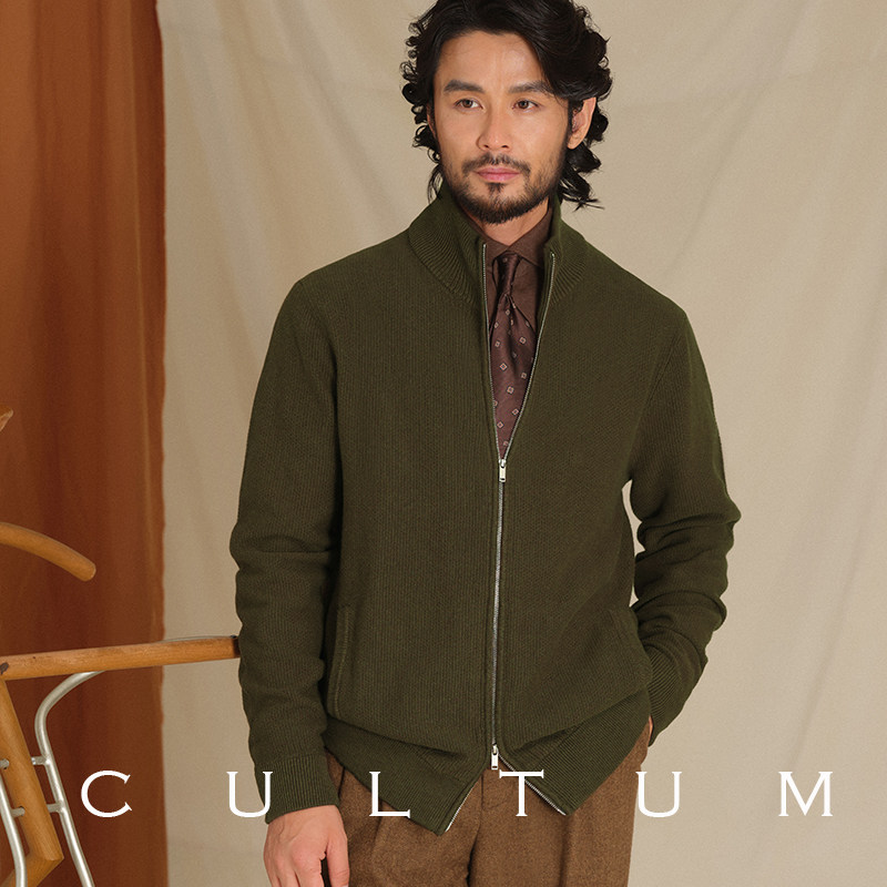 【山羊绒棉混纺】CULTUM意式可翻高领双开拉链针织开衫毛衣外套男