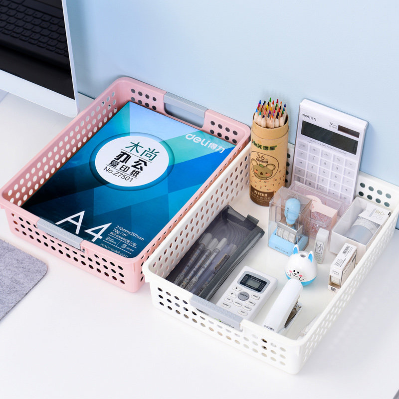 桌面文件收纳篮收纳筐办公室零食置物篮塑料筐整理筐杂志收纳盒架