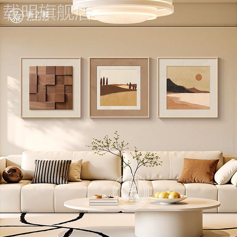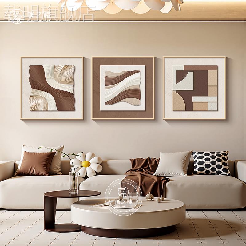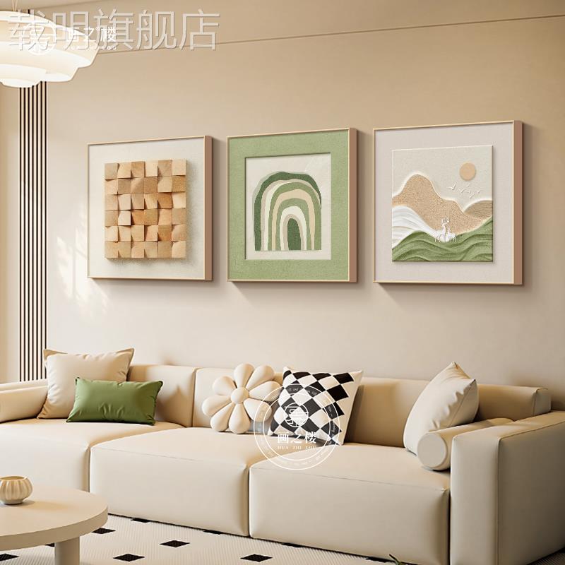 花卉沙发背景墙组合画奶油风抽象线条方形装饰画高档温馨客厅挂画