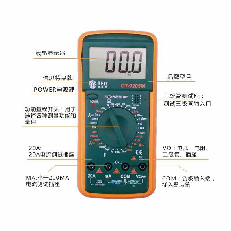 电工DT9205A高精度电子万用表数字万能表万用电表防烧带自动关机