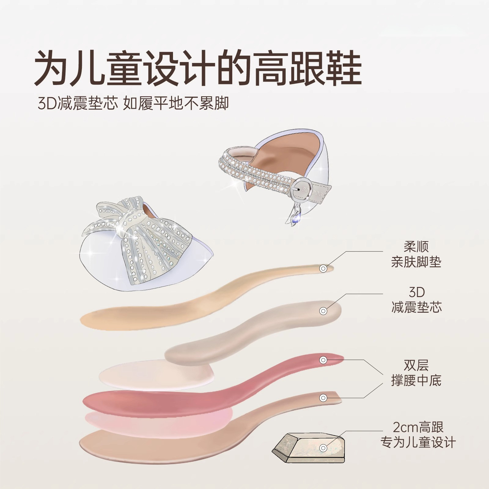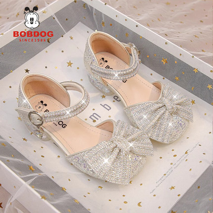 巴布豆真皮儿童公主鞋女童水晶鞋