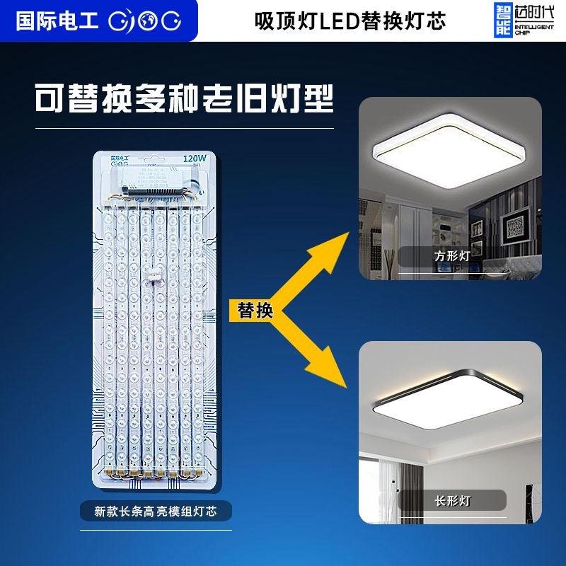 国际电工LED吸顶灯灯芯灯板灯泡灯盘透镜模组家J用节能灯白炽光源