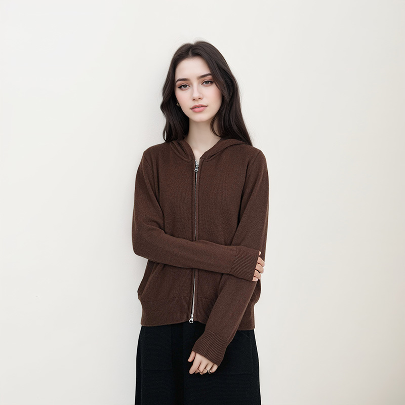 【大潘专享】100绵羊毛连帽开衫纯色百搭休闲针织拉链开衫BN890