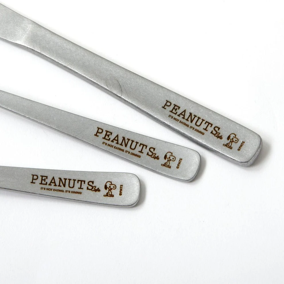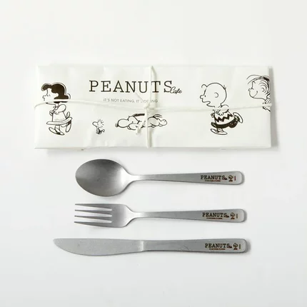 日本代购史努比Peanuts Cafe复古做旧不锈钢餐具刀子刀叉3件套