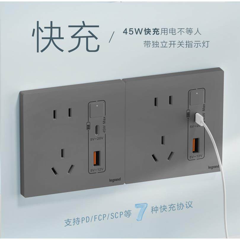 罗格朗开关插座面板家用超薄墙壁五孔插座86型暗装仕典plus深砂银