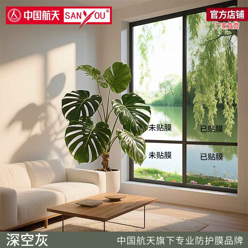 中国航天SANYOU玻璃贴膜高透光贴纸阳光房阳台窗户隔热防爆太阳膜