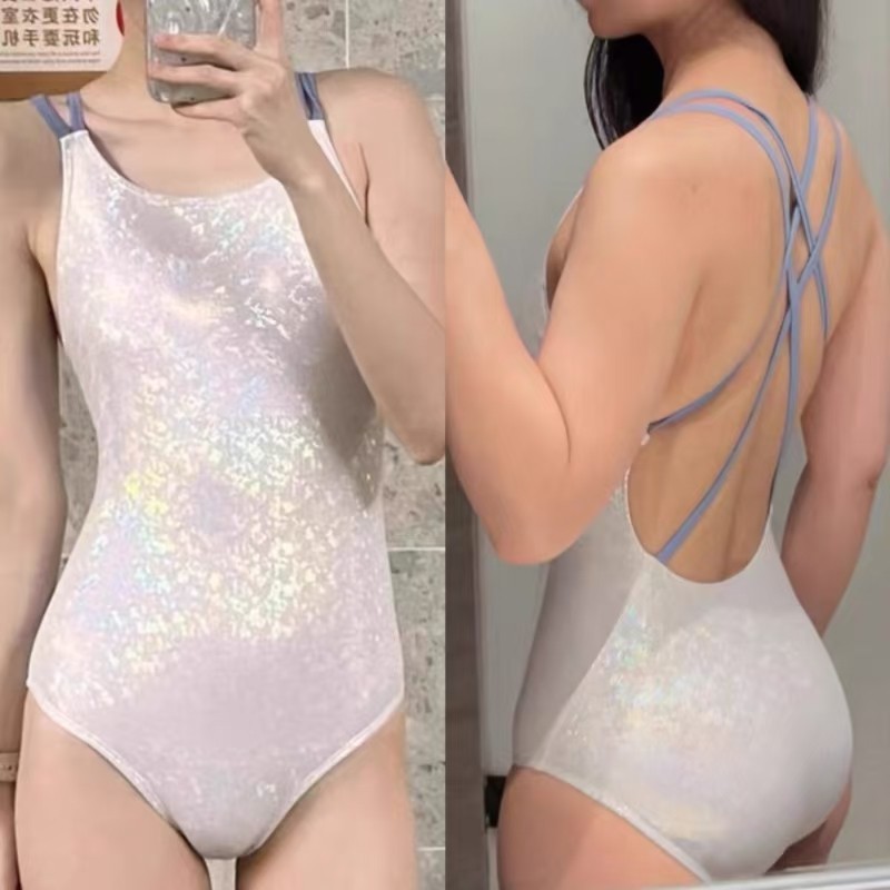 显白高级感运动游泳竞速玲睿儿性感紫色蛇纹温泉连体泳衣纯欲风
