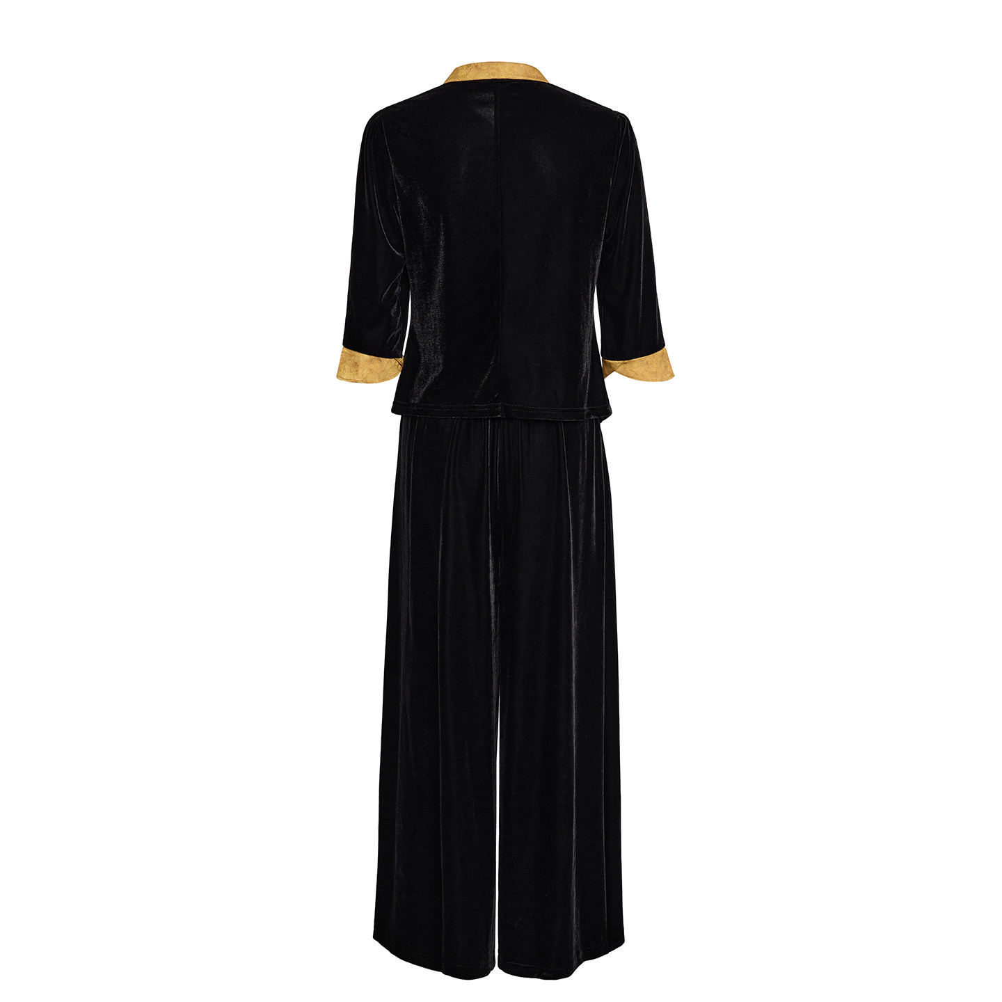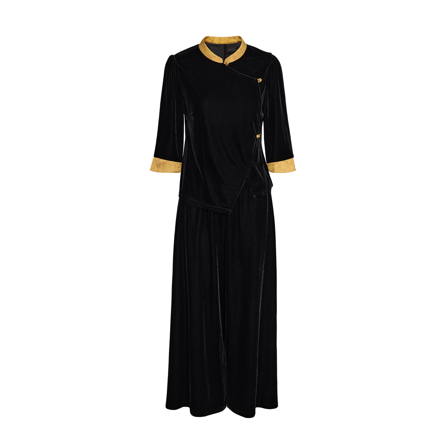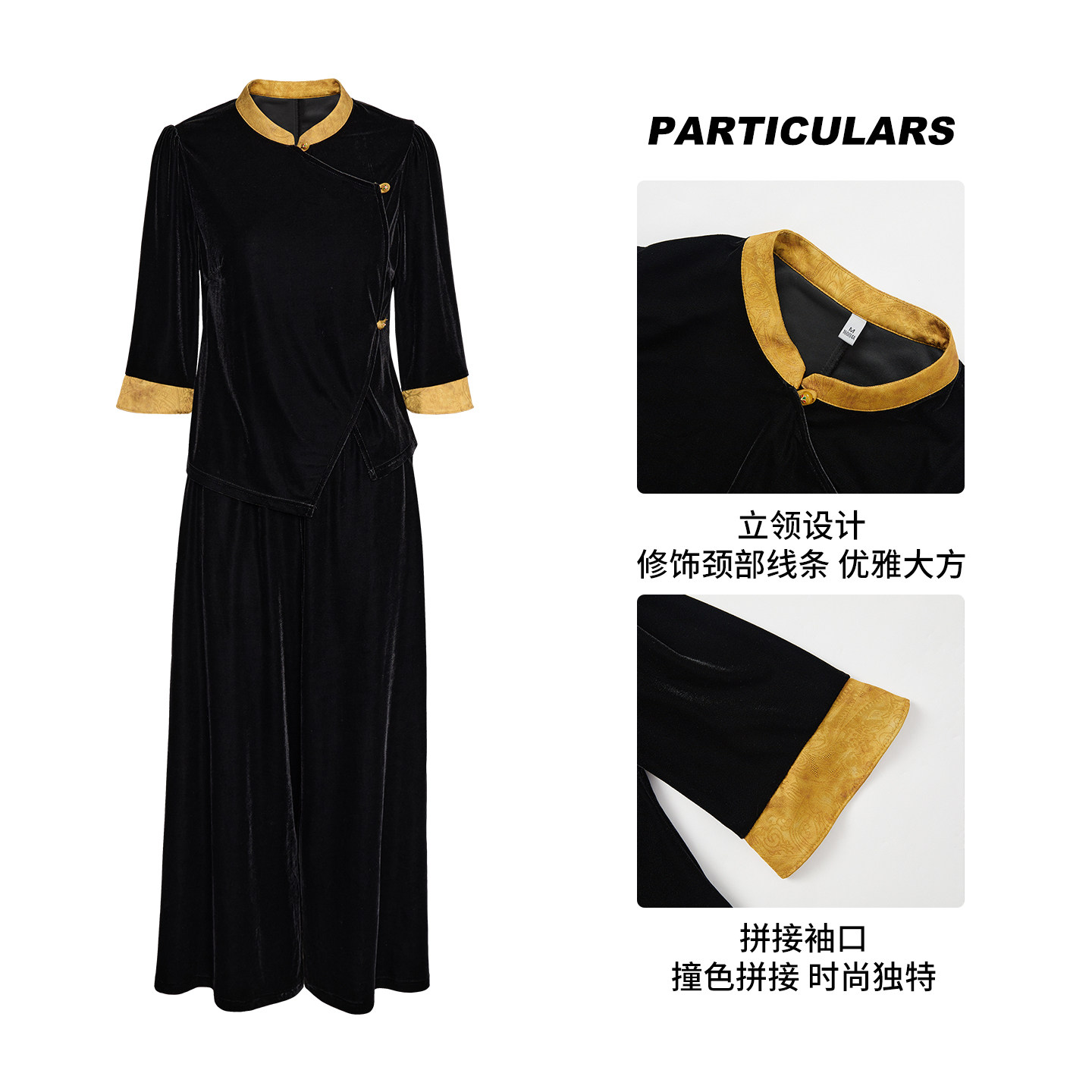 马天奴2025秋冬新款黑色丝绒立领上衣宽松阔腿裤子新中式两件套装