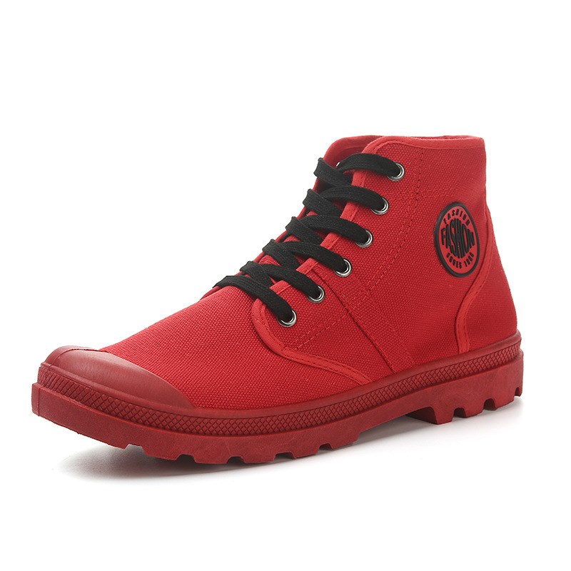春季新款红色高帮帆布鞋男鞋系带圆头马丁靴休闲运动鞋情侣学生鞋
