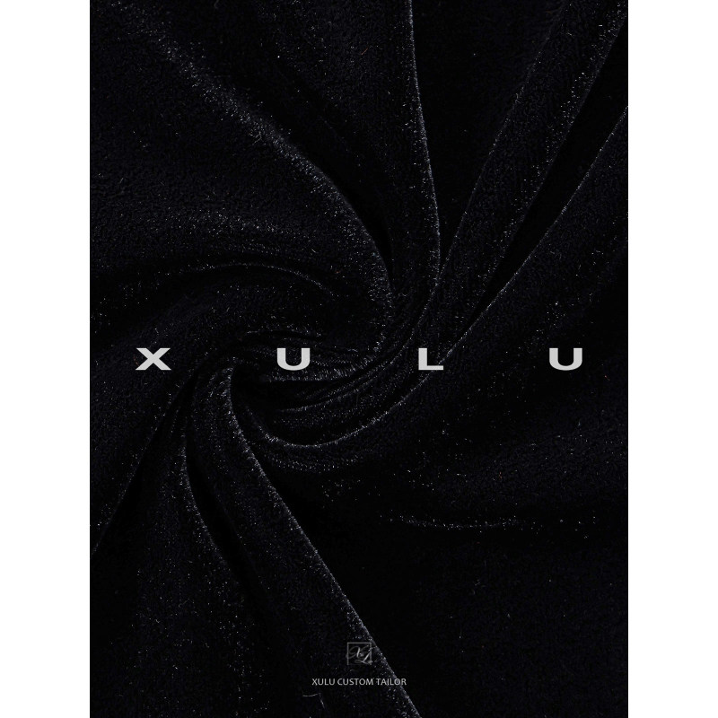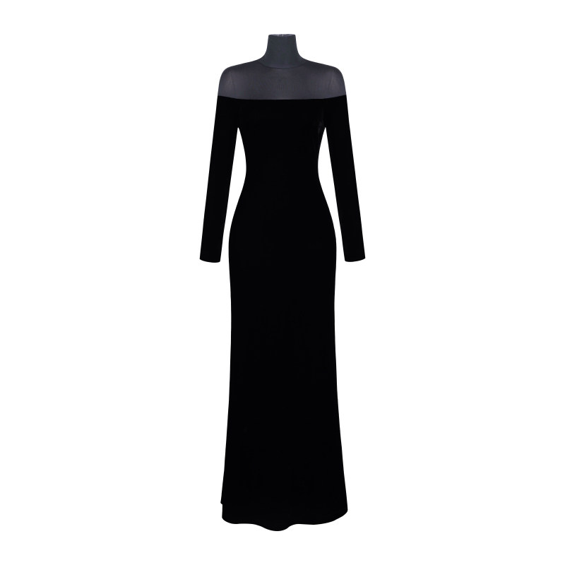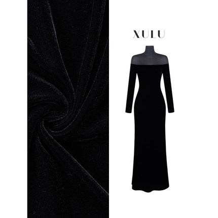 XULU原创轻奢黑色丝绒拼透视网性感高腰修身显瘦长袖高领连衣裙