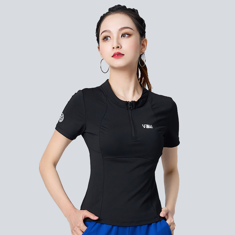 广场舞服装长袖秋速干运动健身跑步舞蹈瑜伽练功演出服拉链短袖女