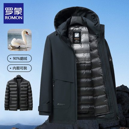 罗蒙鹅绒冬季男士羽绒服男款休闲加厚连帽御寒新款保暖冬装外套