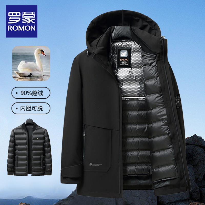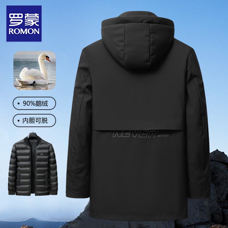 罗蒙冬季鹅绒填充保暖御寒羽绒服