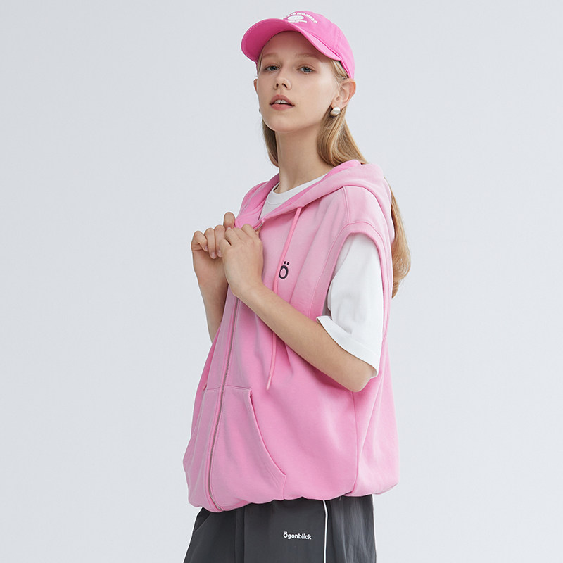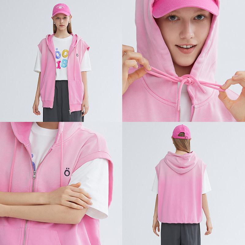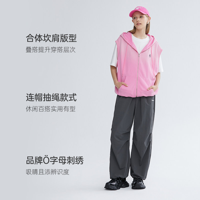 [商场同款]北欧时刻多巴胺粉色渐变连帽卫衣马甲女26夏季马夹外套