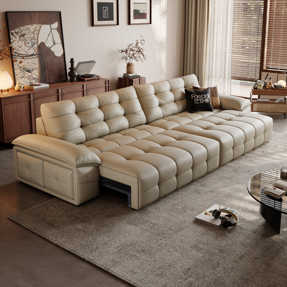 法莎蒂劳伦斯真皮多功能电动沙发