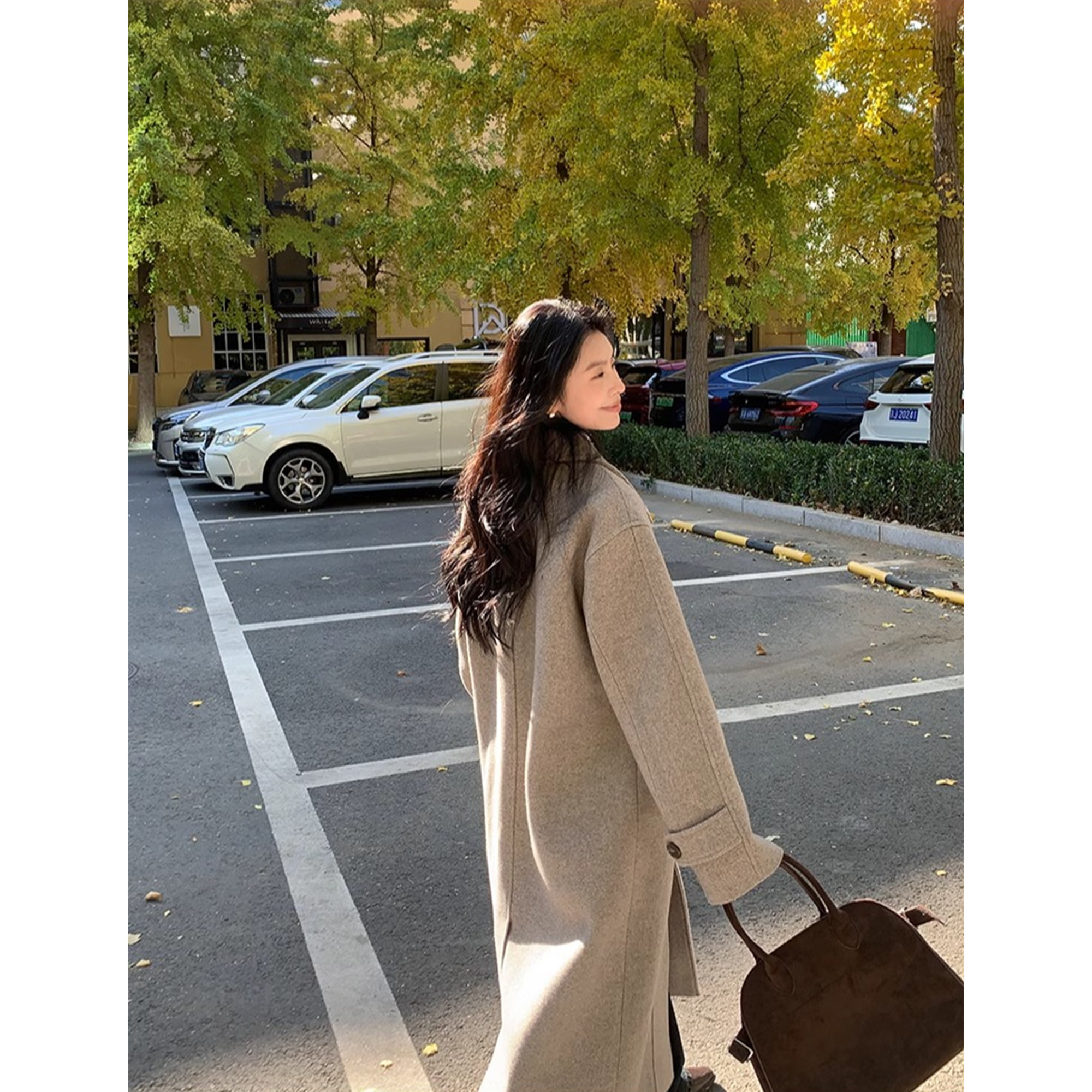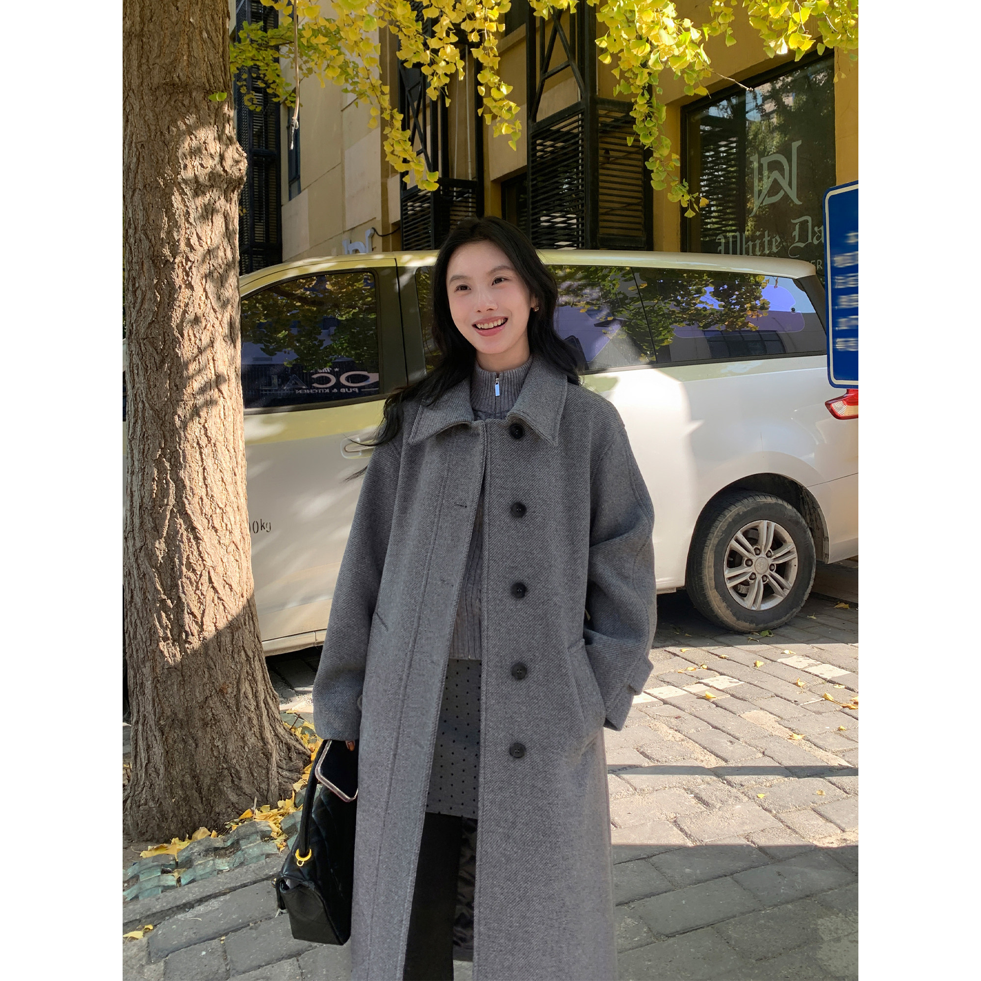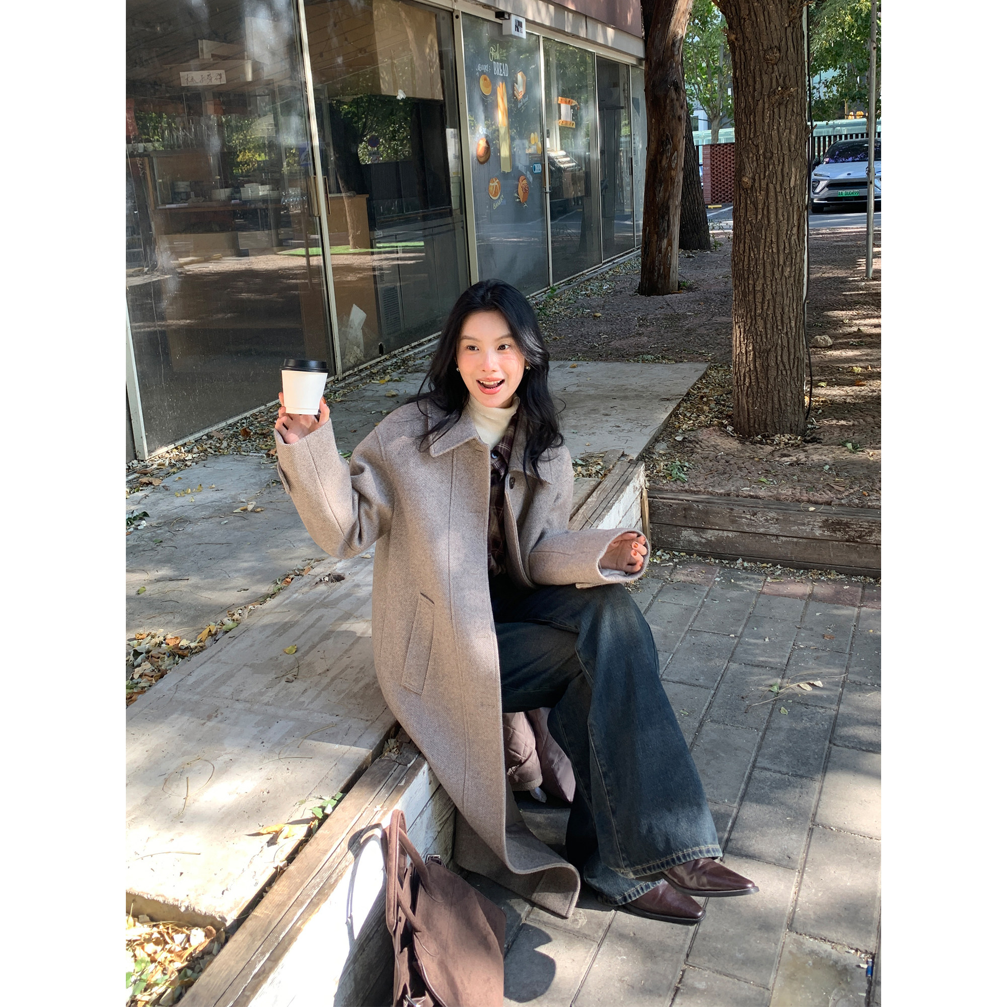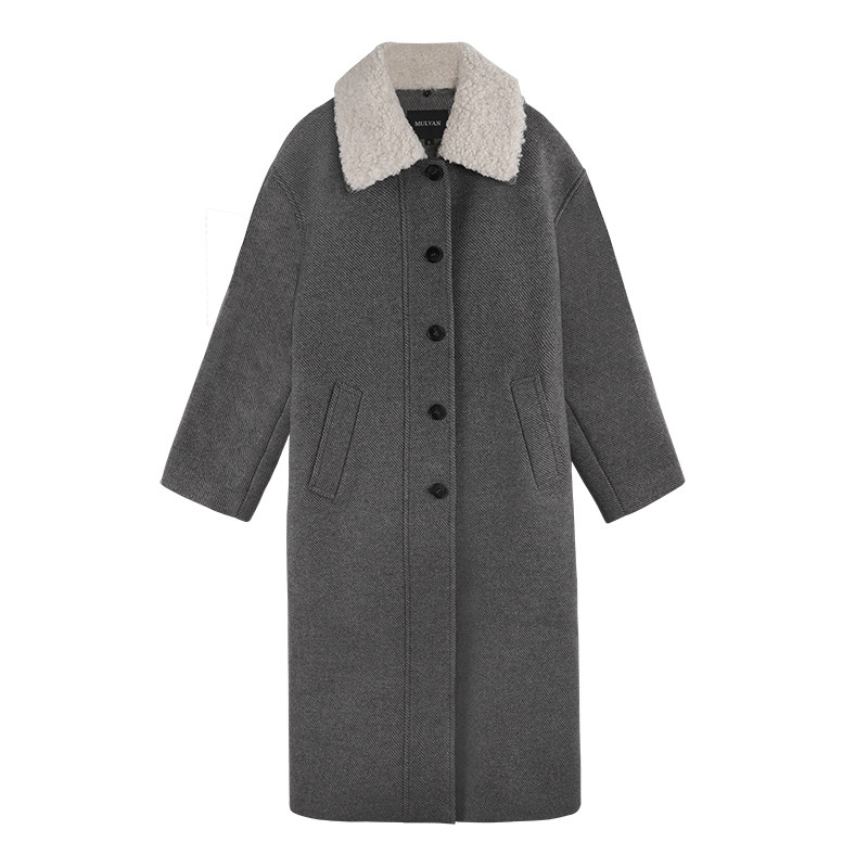 MULVAN 【现货6折】仿羊羔毛领毛呢外套女宽松夹棉羊毛呢子大衣