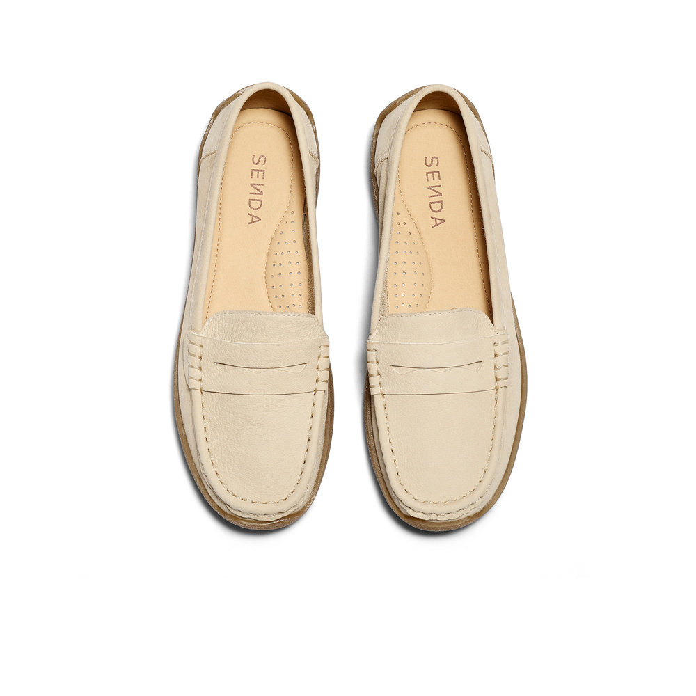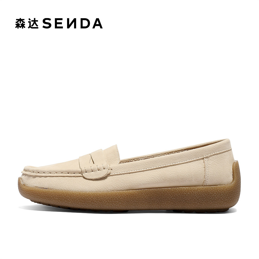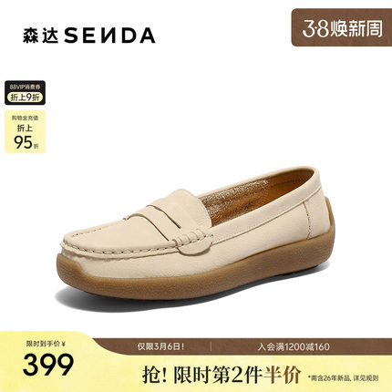 森达真皮乐福鞋女2026春新款商场同款一脚蹬休闲豆豆鞋皮鞋XWW01