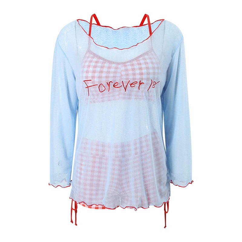 大码泳衣女款分体三件套长袖罩衫复古格子微胖女孩遮肉泡温泉泳衣