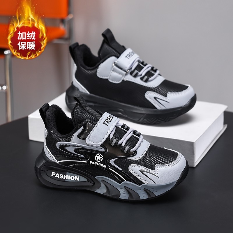 ABC SHIELD男童二棉鞋冬季2025新款青少年皮面儿童运动鞋加绒鞋子